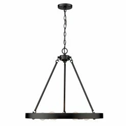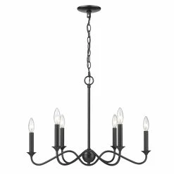 Promo ๐ Golden Lighting Winslett 5 Light Chandelier Matte Black With Ribbed Clear Glass ๐