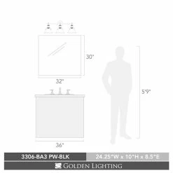 Buy ๐ Golden Lighting Travers 3 Light Bath Vanity – 23″x7.5″ ๐