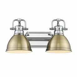 Discount 💯 Golden Lighting Duncan 2 Light Bath Vanity Pewter With Aged Brass Shades 🎁
