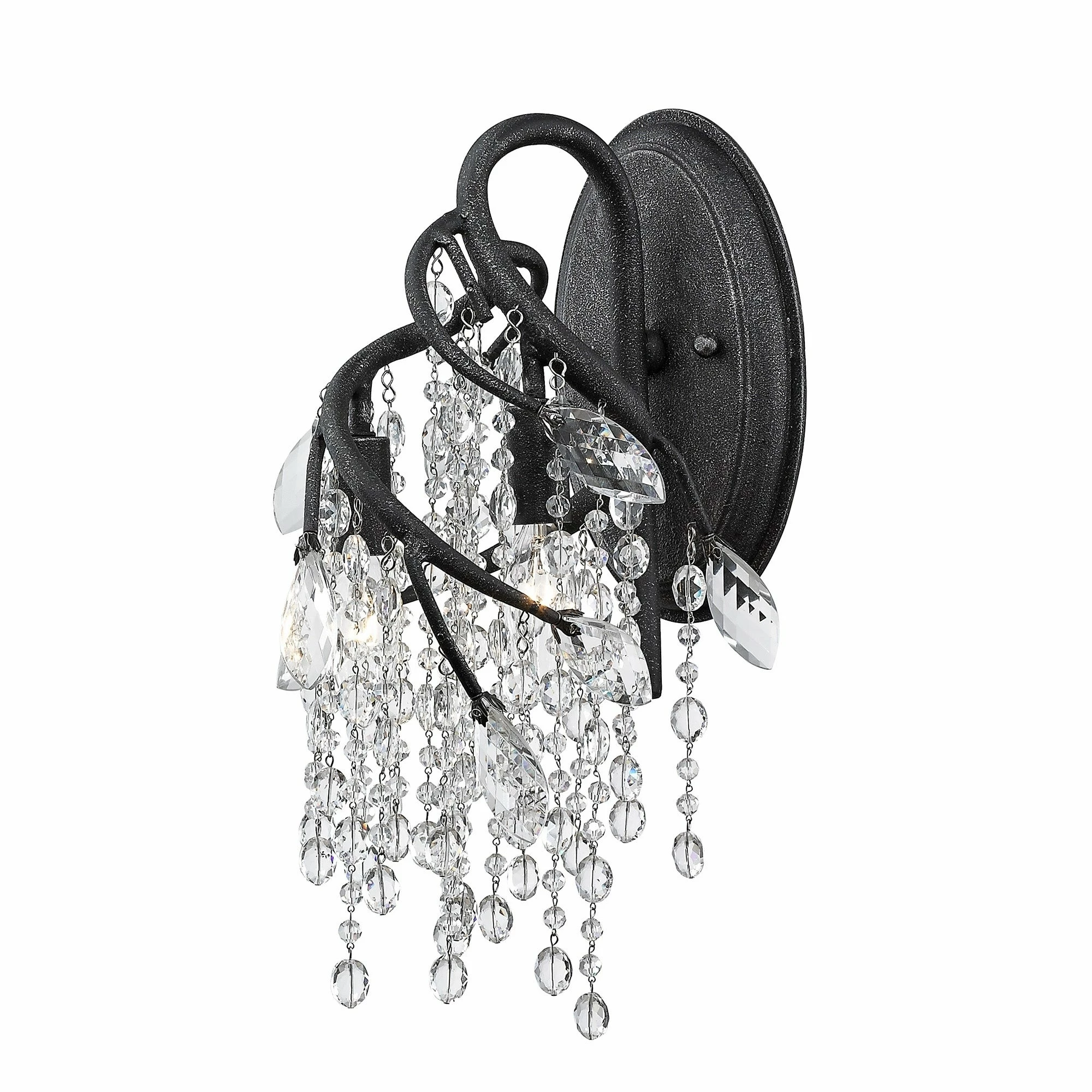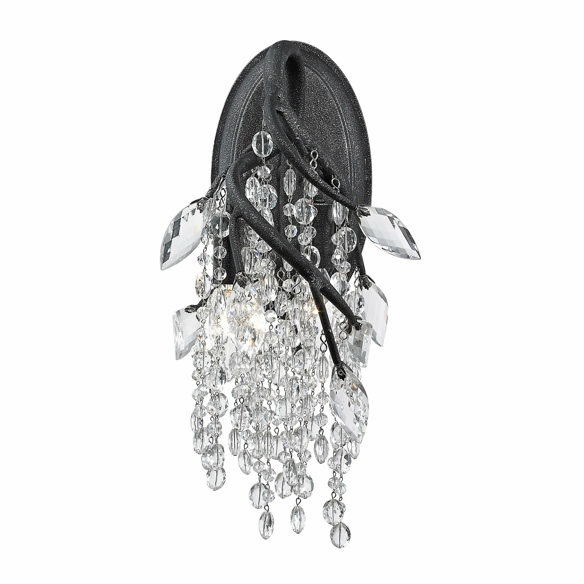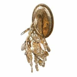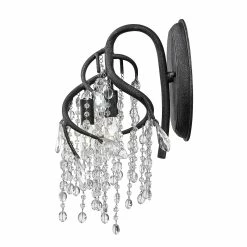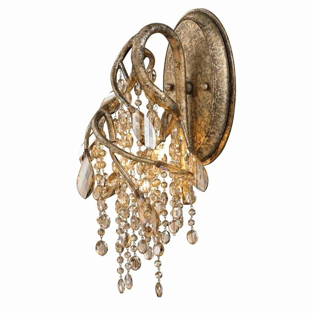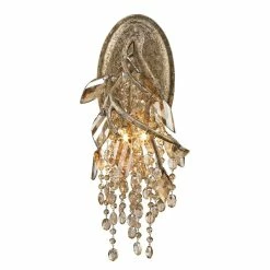 Create a scene of sparkling light in your room with this Autumn Twilight wall sconce. Faceted crystals drape over halogen bulbs to bring a unique shimmering light effect across your walls, floors, and furniture.