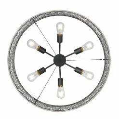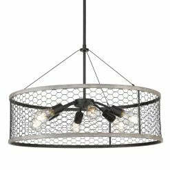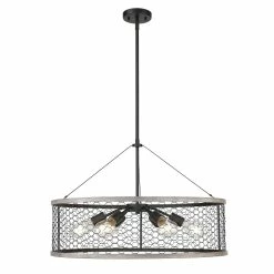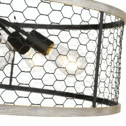 The Bailey collection brings casual, rustic styling to any space. On-trend with modern country interior design, this fixture is perfect for homes with farmhouse dΓ©cor. The open bottom shade features rustic chicken wire held together by a hand-painted matte sheen faux wood frame. The faux wood frame contains hints of gray and brown hues. Add a bit of country-chic style to any room.