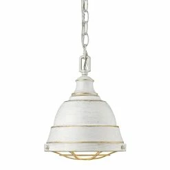 Golden Lighting’s Bartlett collection features industrial, vintage-inspired fixtures with simple, traditional silhouettes that are a nod to a bygone era. The collection features authentic details like caged diffusers and exposed hardware. The French White finish features brushed gold highlights. Ideal for the kitchen, the mini pendant provides soft ambient downlight, illuminating a kitchen bar or countertop without interfering with activity on the surface.