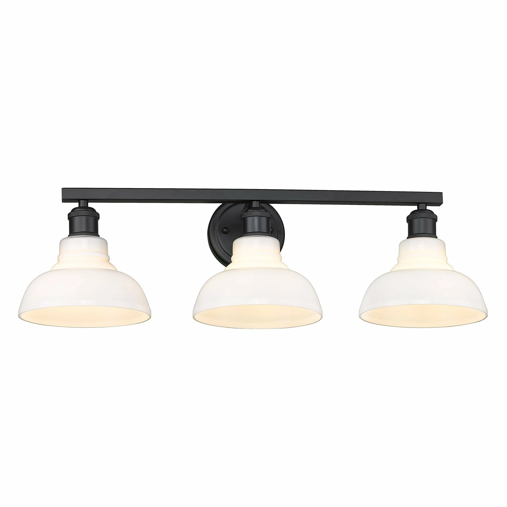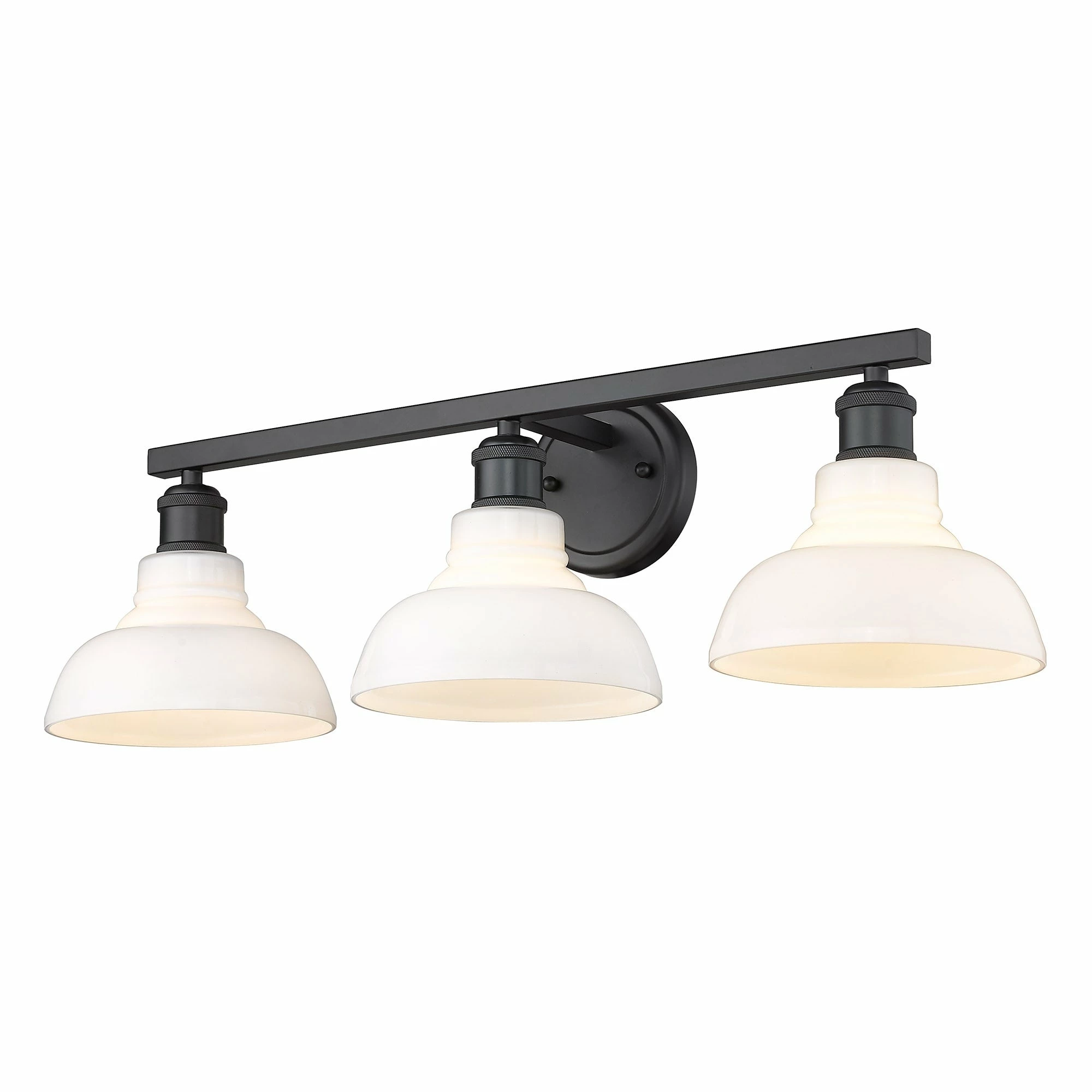 This cool, industrial design is perfect for transitional to modern decors. The sleek finishes and choice glass options create an array of bright, stylish fixtures. Safety-rated for damp locations, it is ready for any room. Enhance your home’s contemporary style with the beautiful details of the Carver Collection. This 3-light bath fixture includes all mounting hardware and is easy to install.