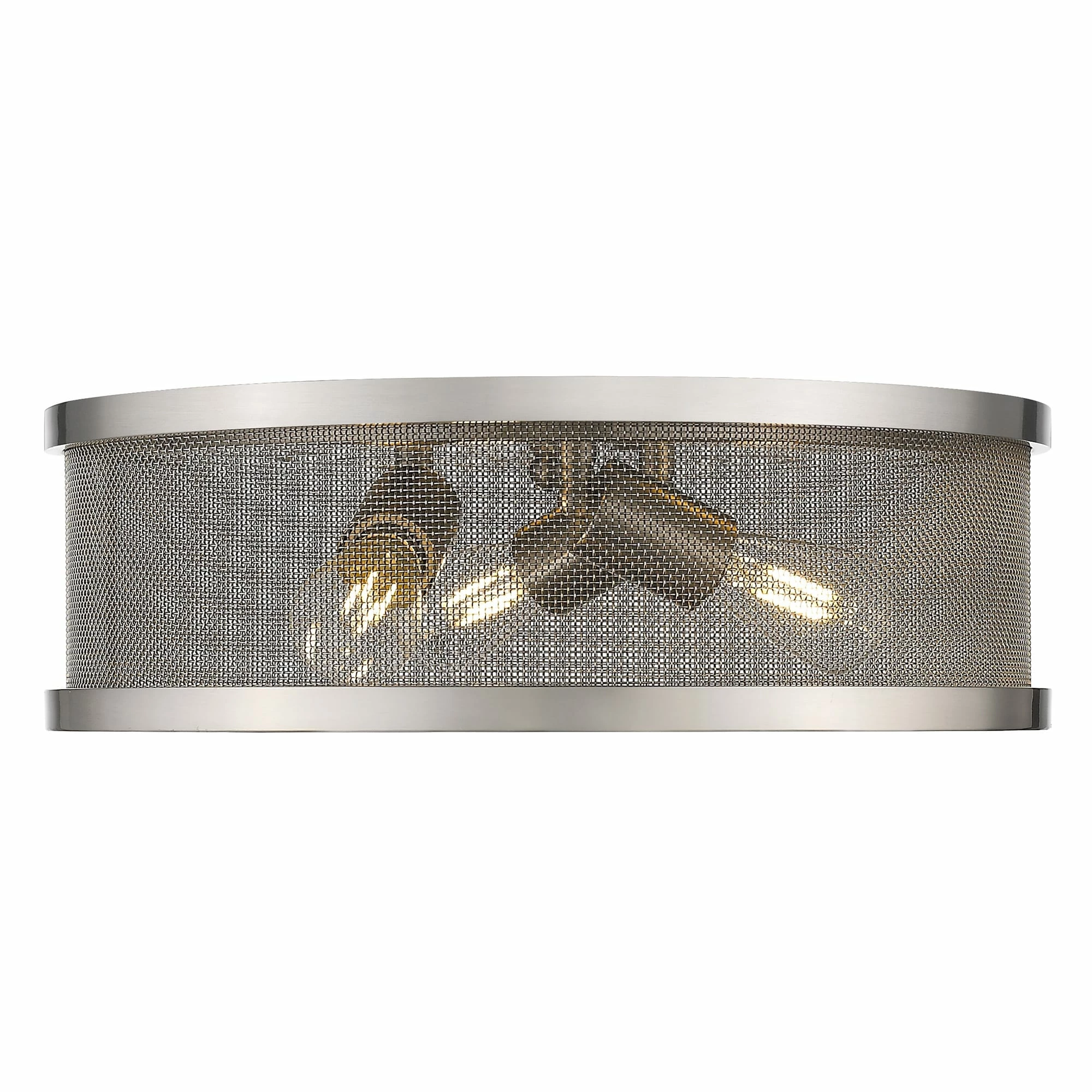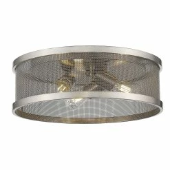 The simple, partially exposed design of this stout little number reinforces its transitional, industrial charm. A mesh metal shade is the only accent for this utilitarian fixture, partially shielding its bulbs, as your choice of several gorgeous finishes makes for a customized lighting solution you’re sure to adore.