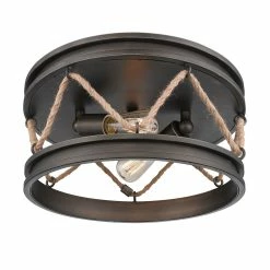 Inspired by the sea, this coastal collection features a simple design with authentic, nautical details. Tied in sailor’s knots, woven ropes loop metal cleats before being suspended from maritime hooks. The contrast between the color and texture of the rope and metalwork creates visual interest. This look is perfect for seaside retreats, casual lofts, and rustic bungalows. This 2-Light flush mount is open at the bottom to cast widespread, ambient light.