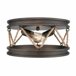 Inspired by the sea, this coastal collection features a simple design with authentic, nautical details. Tied in sailor’s knots, woven ropes loop metal cleats before being suspended from maritime hooks. The contrast between the color and texture of the rope and metalwork creates visual interest. This look is perfect for seaside retreats, casual lofts, and rustic bungalows. This 2-Light flush mount is open at the bottom to cast widespread, ambient light.