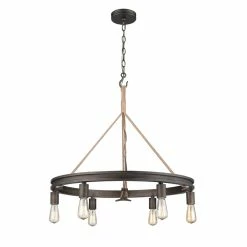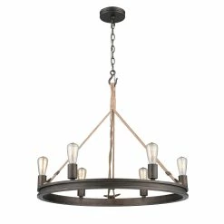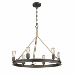 Inspired by the sea, this coastal collection features a simple design with authentic, nautical details. Tied in sailor’s knots, woven ropes loop metal cleats before being suspended from maritime hooks. The contrast between the color and texture of the rope and metalwork creates visual interest. Created to be hung with the lamps facing up or down, the transitional fixtures are versatile. This look is perfect for seaside retreats, casual lofts, and rustic bungalows. This 6-Light chandelier is comfortably sized for intimate dining and living areas.