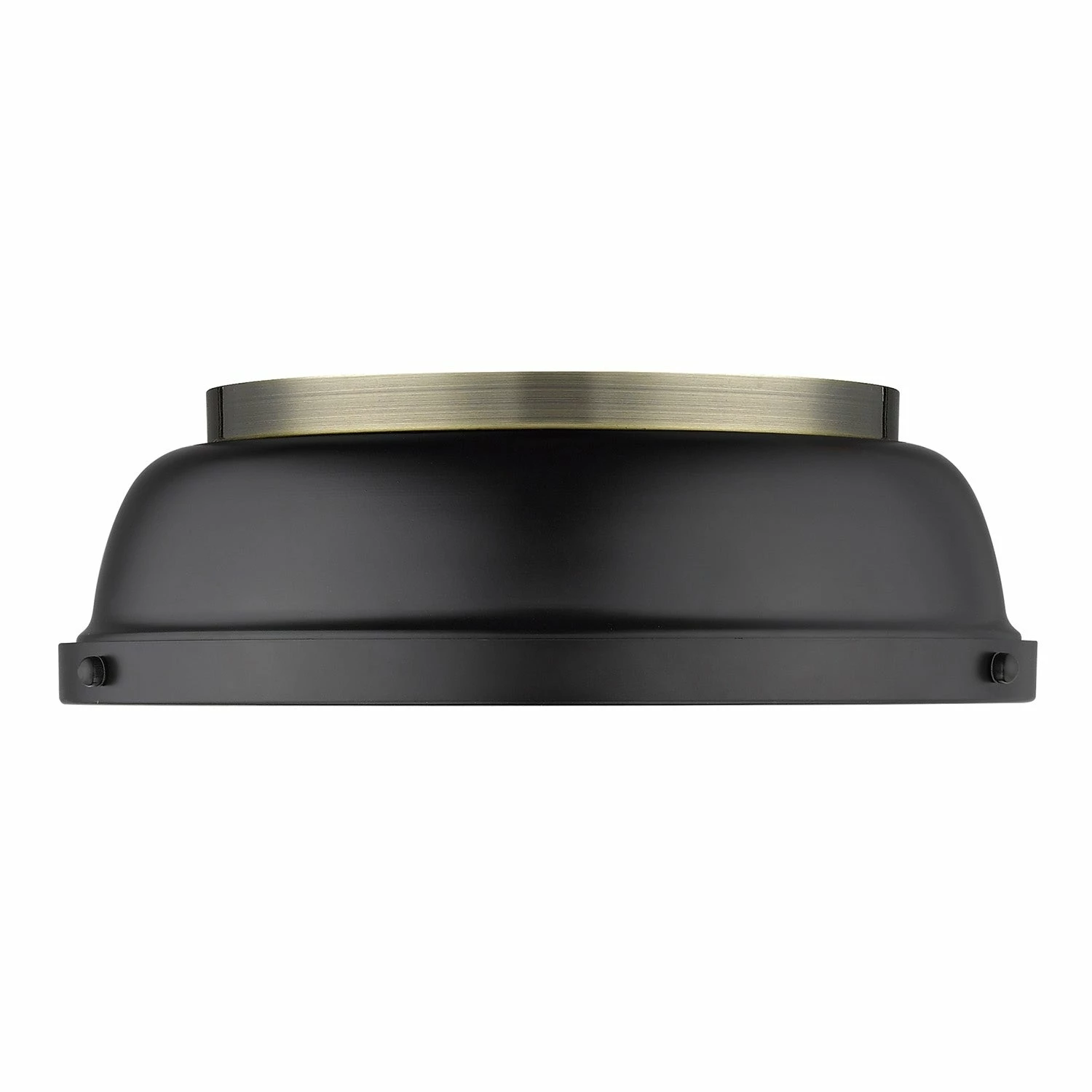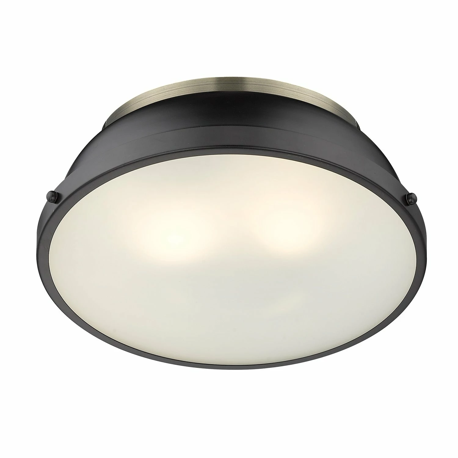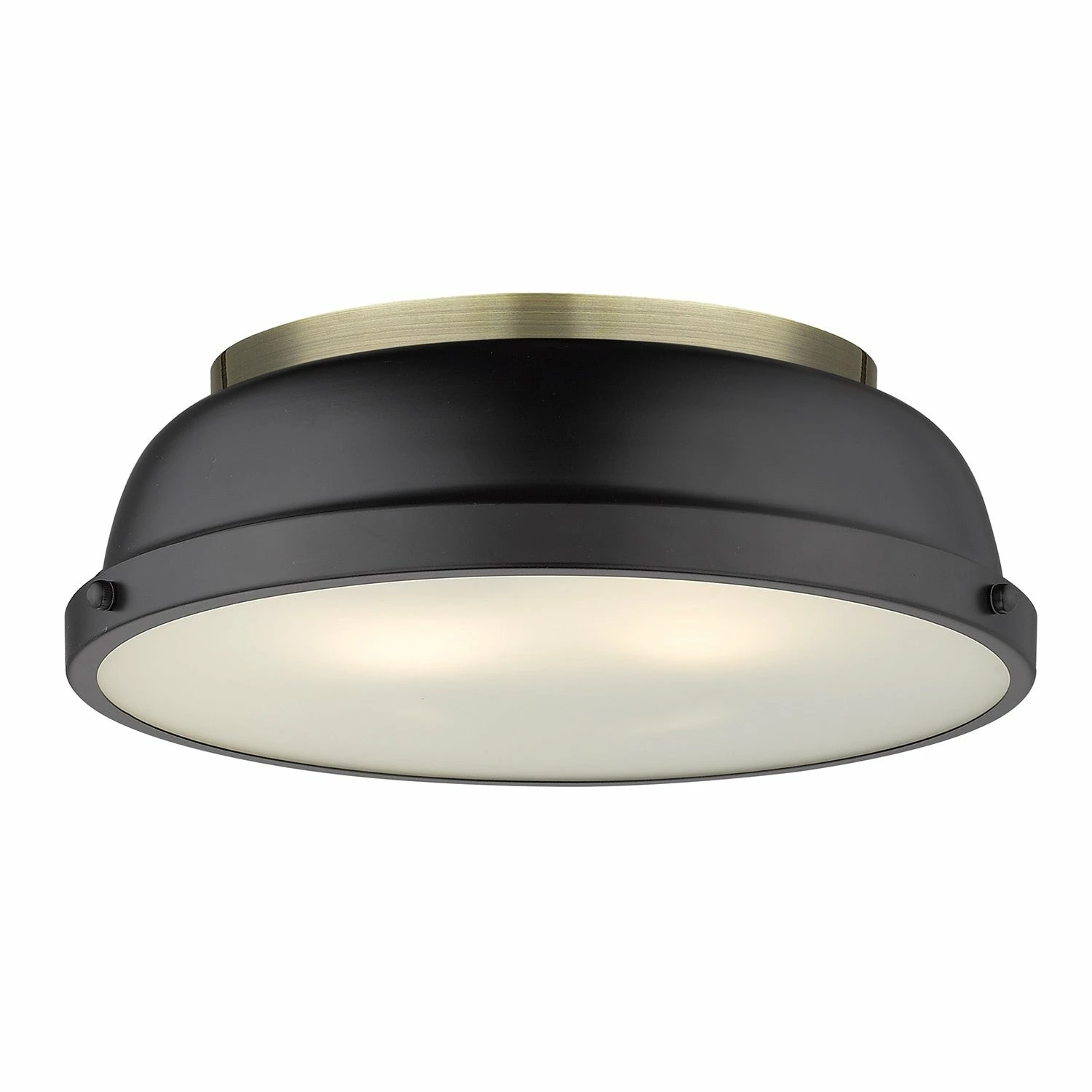 Bring diffuse light into your home when you install this Duncan flush-mounted light fixture on your ceiling. The aged brass finish adds a vintage feel to the simple, contemporary shape of the light.