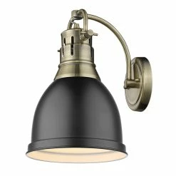 Use the warm ambient light from this Duncan wall sconce to illuminate doorways or hallways. The aged-brass finish and shade give this transitional single-light fixture a versatile look that works well with numerous palettes and design styles.