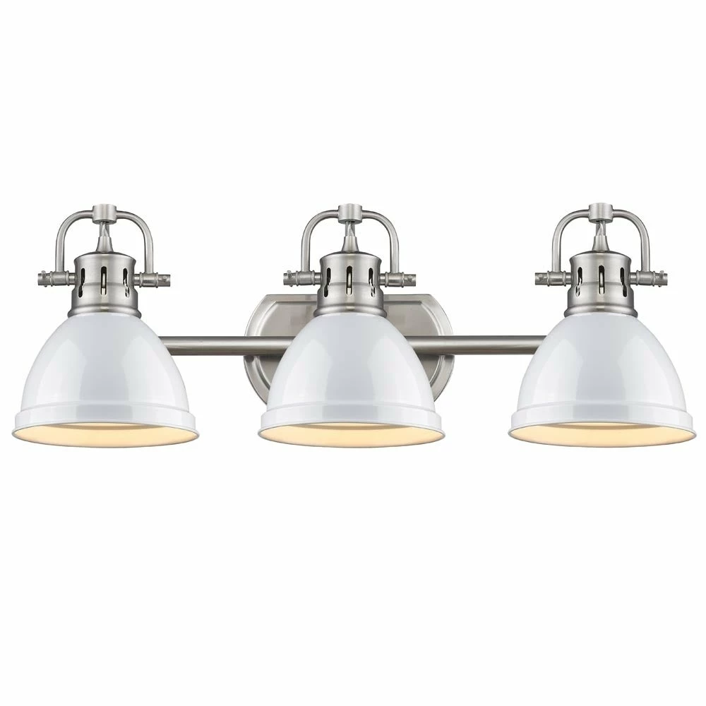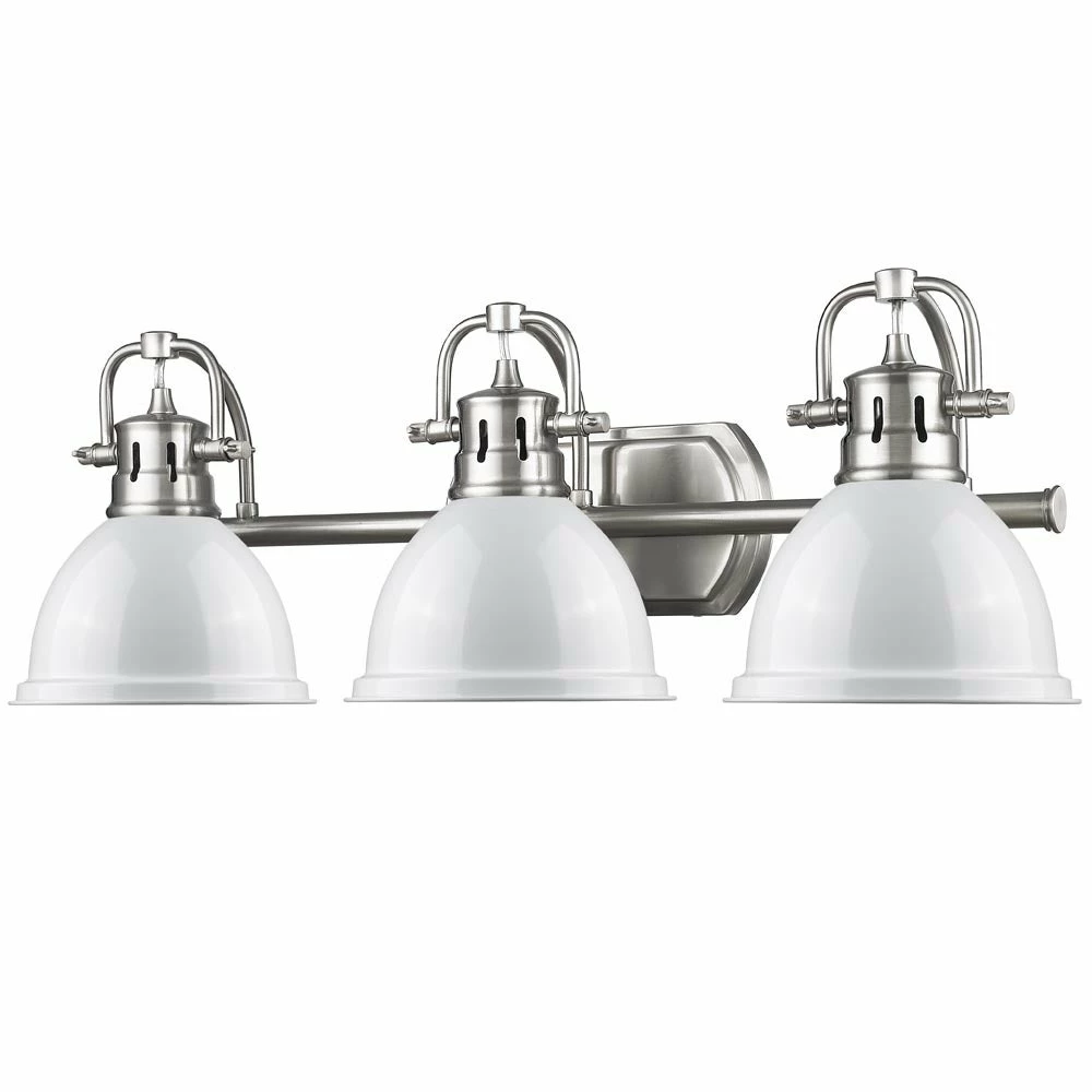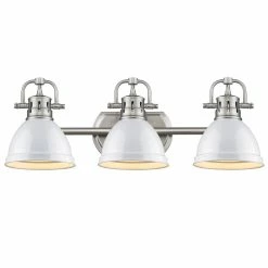 Update your bathroom by installing this track lighting fixture with white shades. The modern fixture features three bright lights that help provide ample lighting to your vanity and throughout your bathroom.