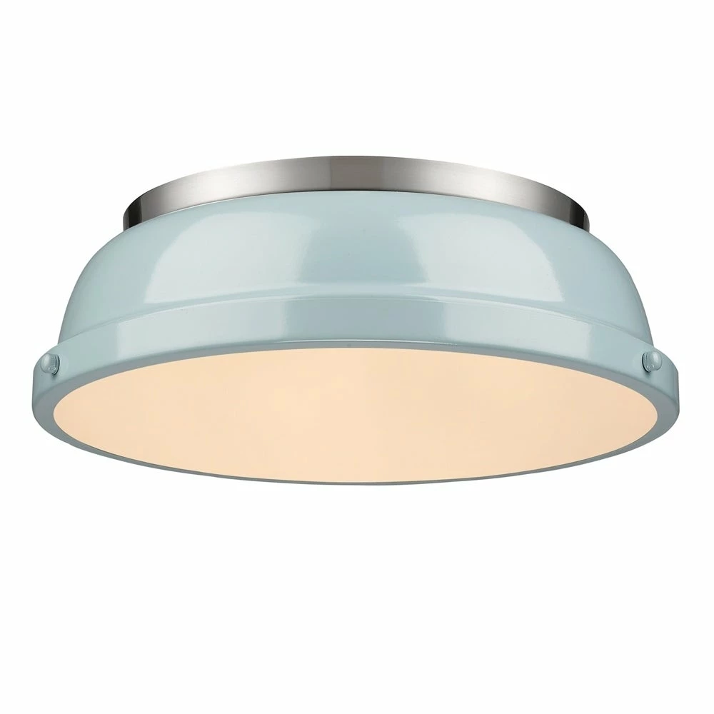Give your home a contemporary touch with this flush mount that features a seafoam shade for a unique complement to your decor. This flush mount is safe for damp locations, allowing it to work easily in kitchens or bathrooms.