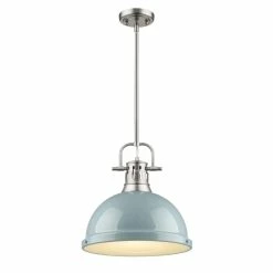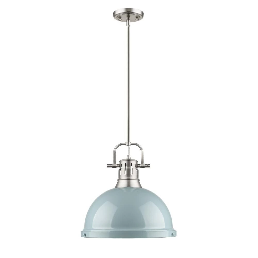 Illuminate your home with this pendant light made of durable steel for long lasting indoor use. Featuring a seafoam metal shade, the light exudes a contemporary look and complements various room decor.