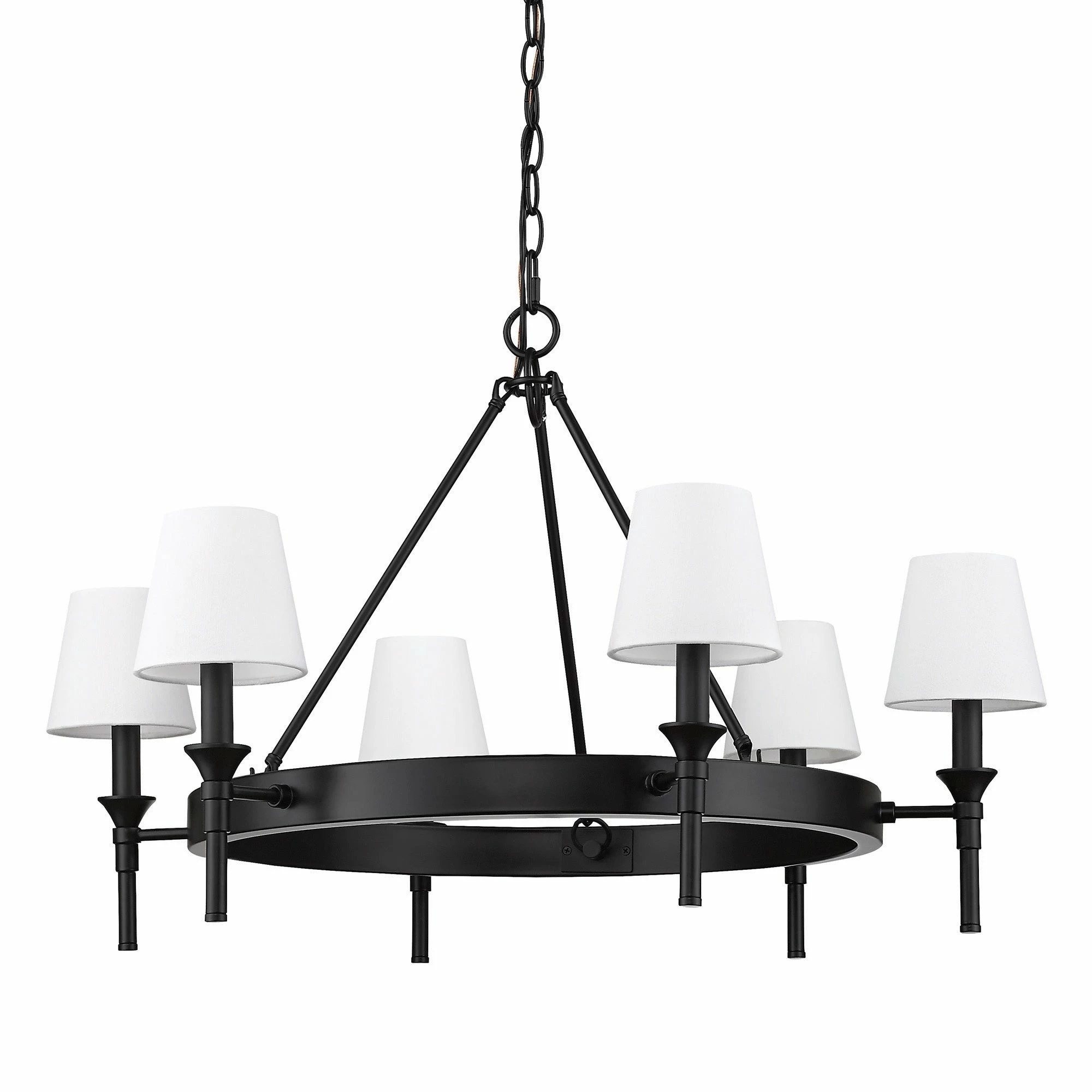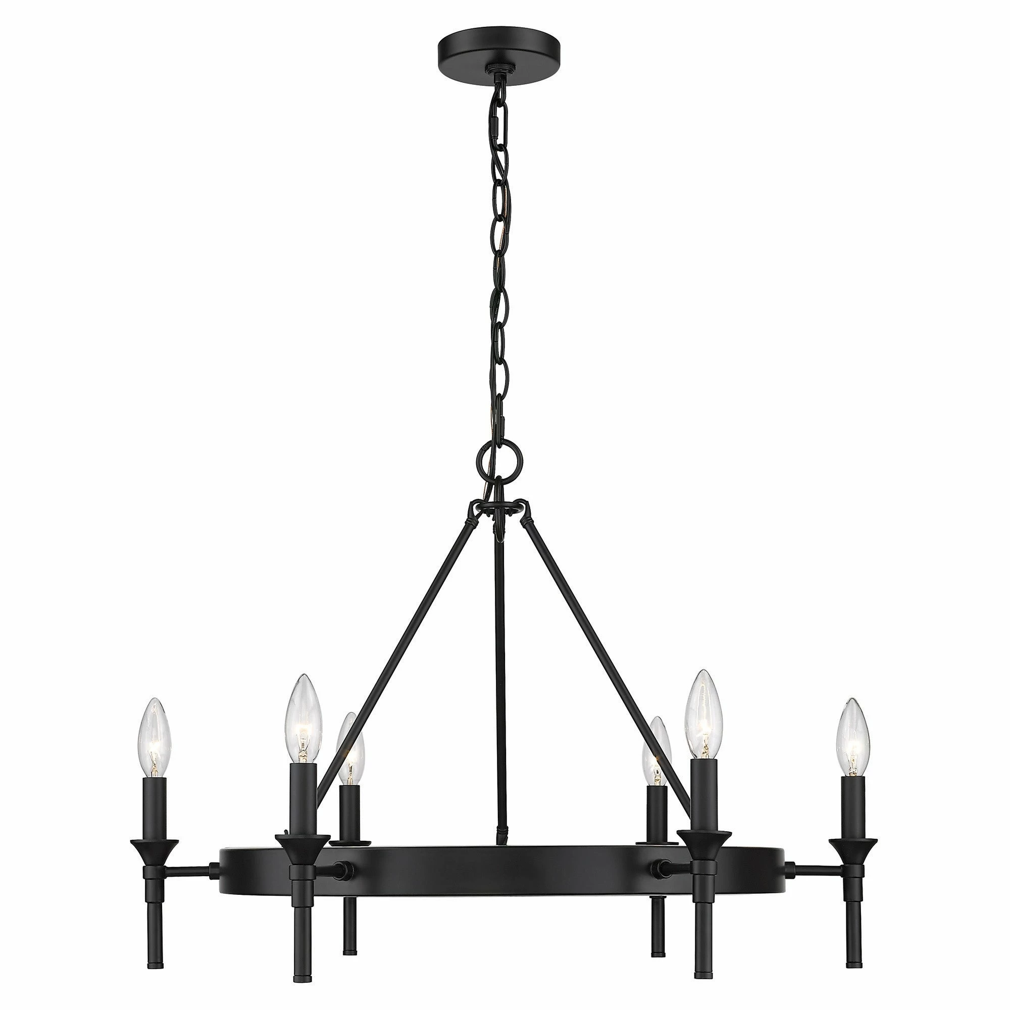 Edinburgh is the perfect combination of style and functionality. The silhouette and refined details are reminiscent of the grand classic and revival pieces. Still, the transitional look is kept simple and clean to coordinate with a variety of interiors. For added sophistication, cover the candelabras with optional modern white fabric shades. Light up your table with this ring chandelier and create an atmosphere that is perfect for dining and entertaining.