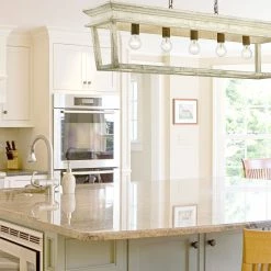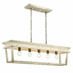 The Haiden Collection features cozy, lantern style fixtures. This linear pendant is part metal finished in Burnished Chestnut and part light-grey, distressed wood. The trendy mix of these materials gives the linear pendant the perfect cross between cozy farmhouse and clean modern style. This linear pendant is comfortably sized to fit over a kitchen island.