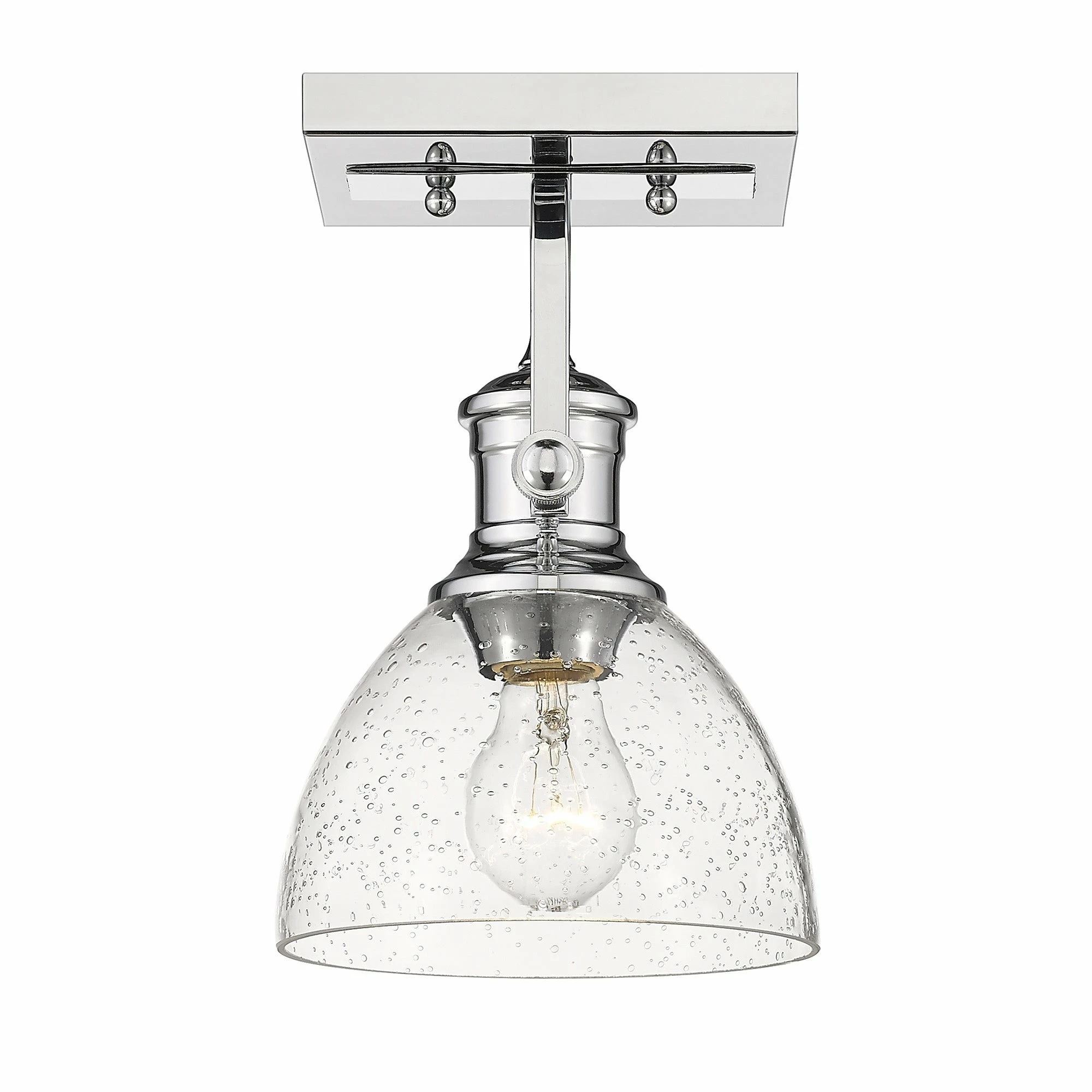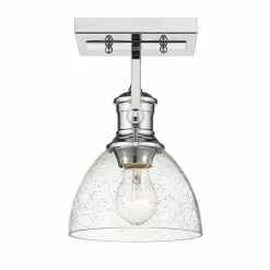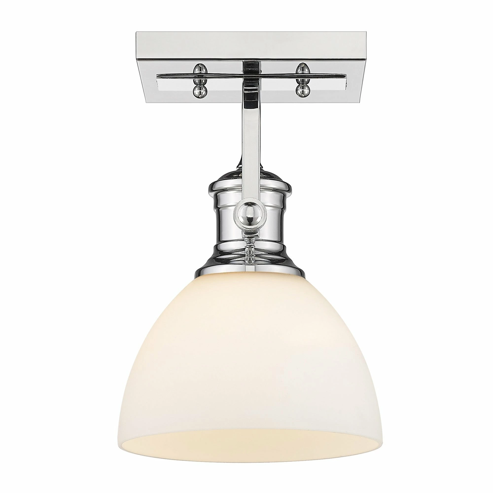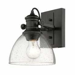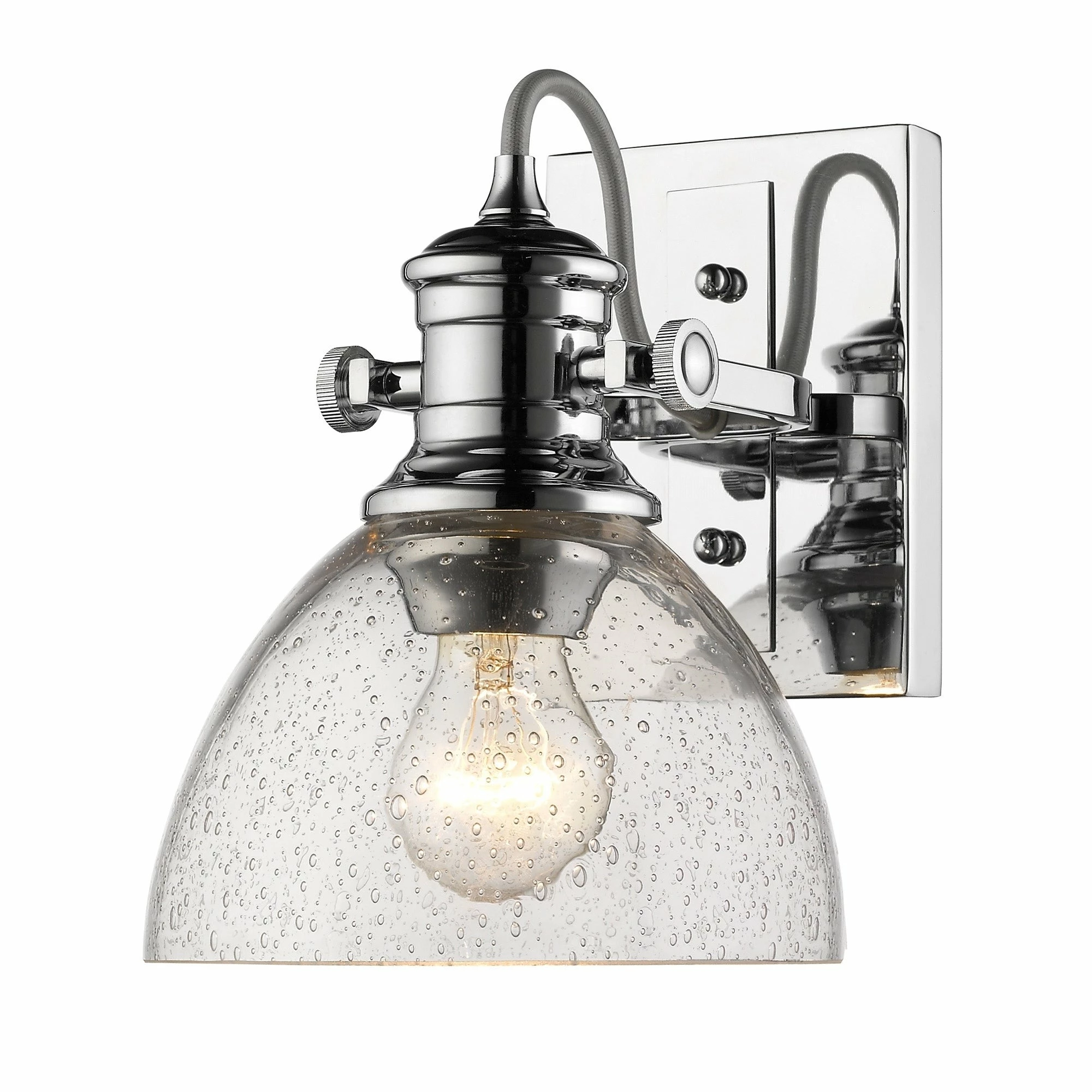 Offered in four smooth finishes, with two glass options, Hines is suitable for a variety of decors. The transitional style is a marriage of traditional silhouettes with modern finishes. The matte black, pewter, rubbed bronze and chrome fixtures are paired with opal or seeded glass shades. 1-light bath fixtures are popularly used in halls, stairways, bathrooms and entries as accents.