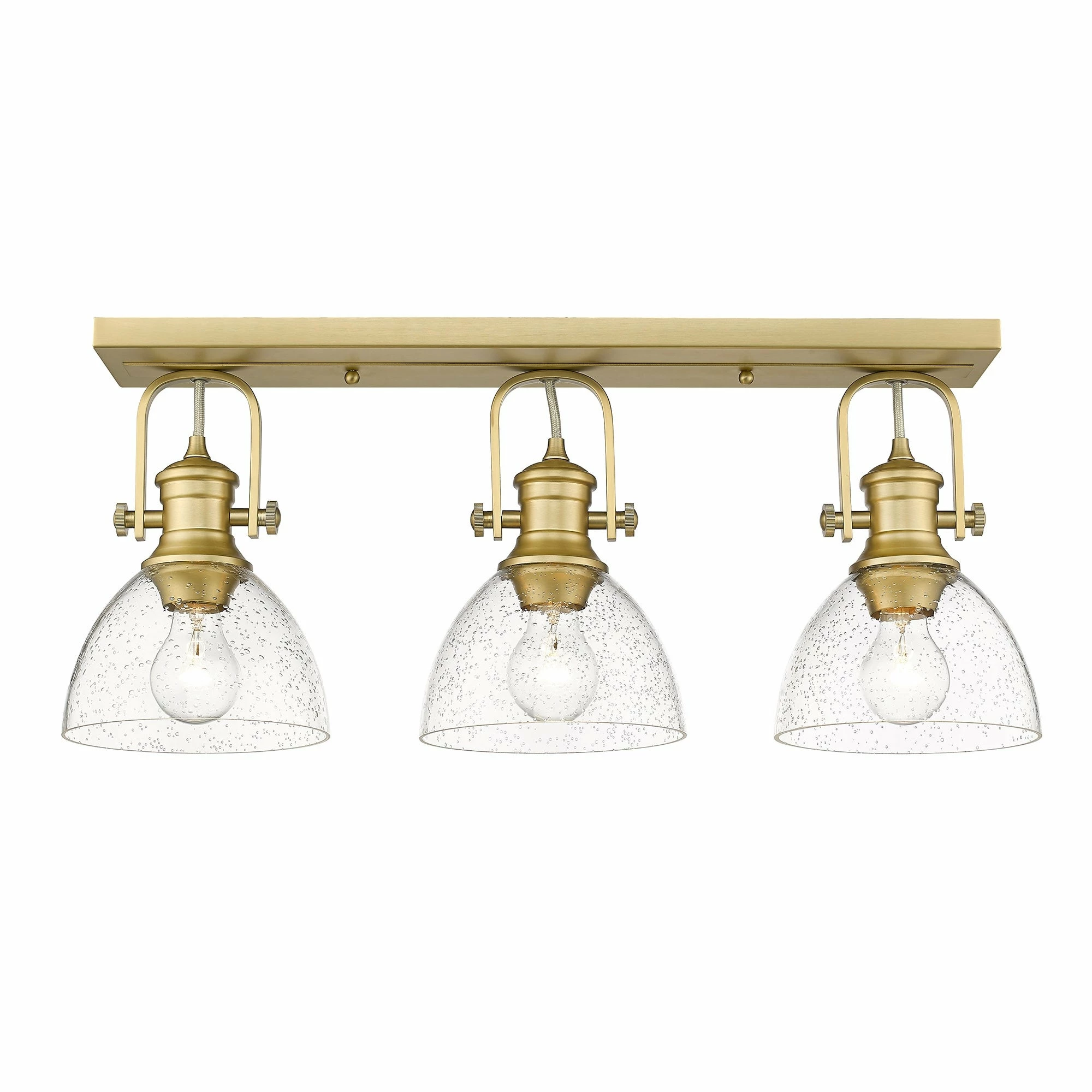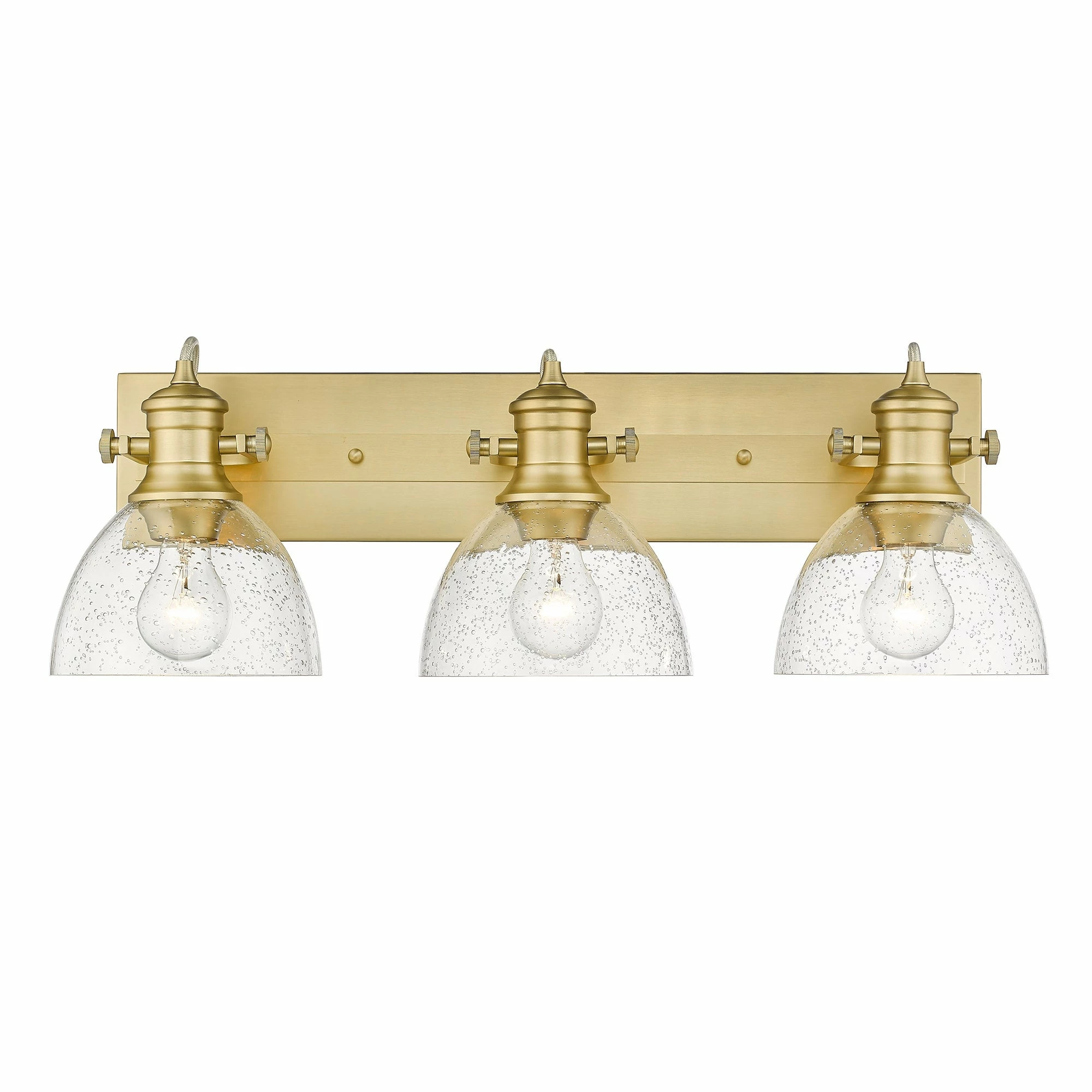 Offered in four smooth finishes, with two glass options, Hines is suitable for a variety of decors. The transitional style is a marriage of traditional silhouettes with modern finishes. The Matte Black, rubbed bronze, Pewter and Chrome fixtures are paired with opal, seeded, or clear glass shades. This 3-light bath vanity is UL approved damp locations.
