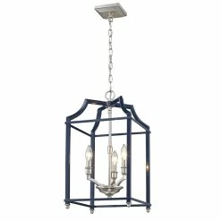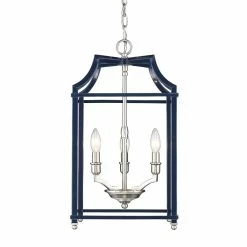 Combine the best of modern aesthetics and old-fashioned design when you hang the two-tone, pewter-and-navy Leighton pendant in your foyer. Three candelabra-style lights shine through the open cage to provide ample illumination, and steel construction ensures long-lasting utility.