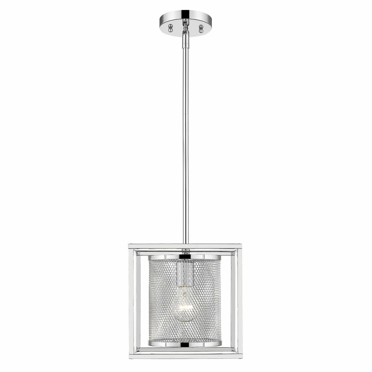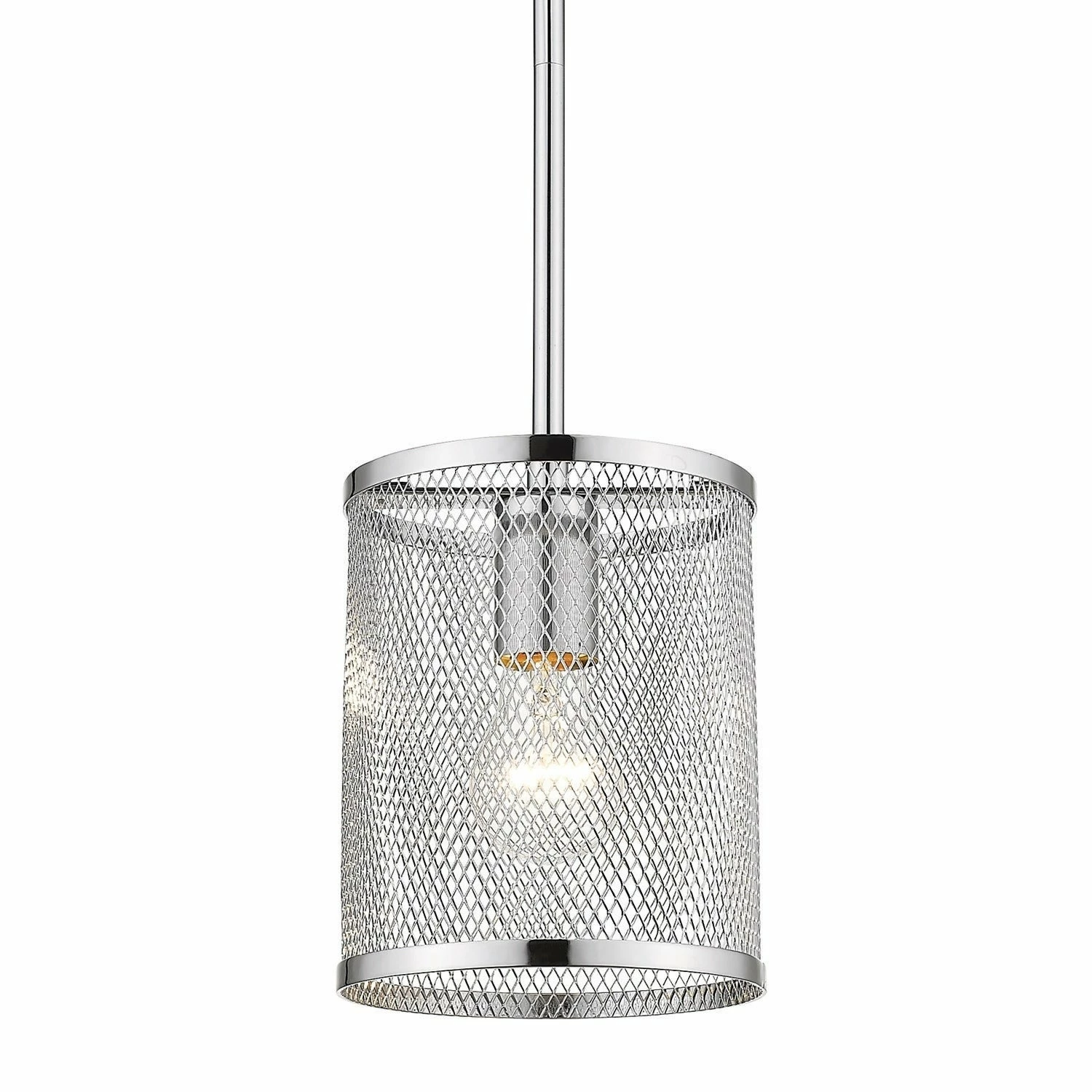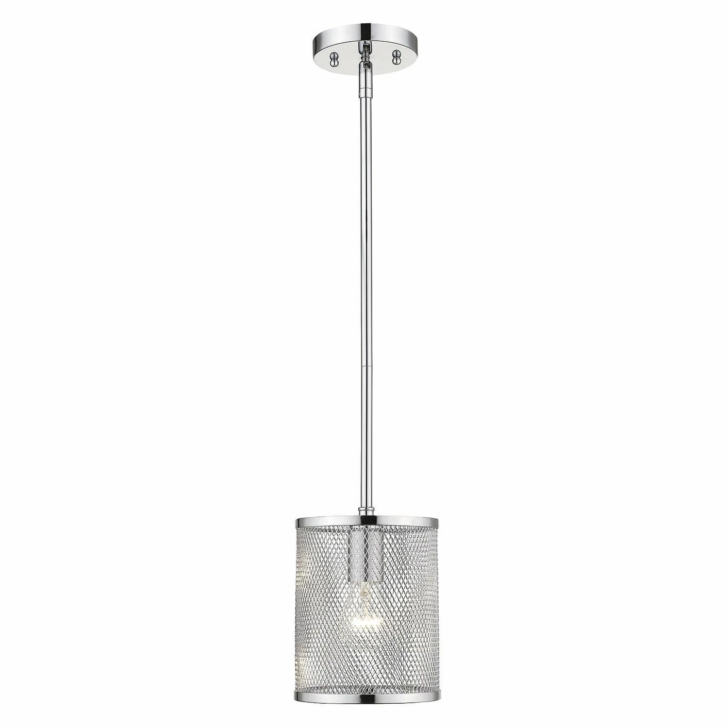 Enhance the look of your room with this stylish design. A simple light source is screened by a mesh metal drum shade finished in gleaming chrome. Framed by an optional contemporary cage, this open, industrial chic look has an airy feel. Choose between a matching chrome cage or add visual interest with the contrasting matte black option. Easily customize the height to suit your application. This mini pendant is perfect grouped over an island or bar.