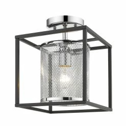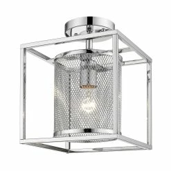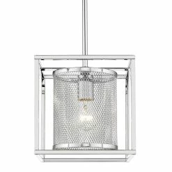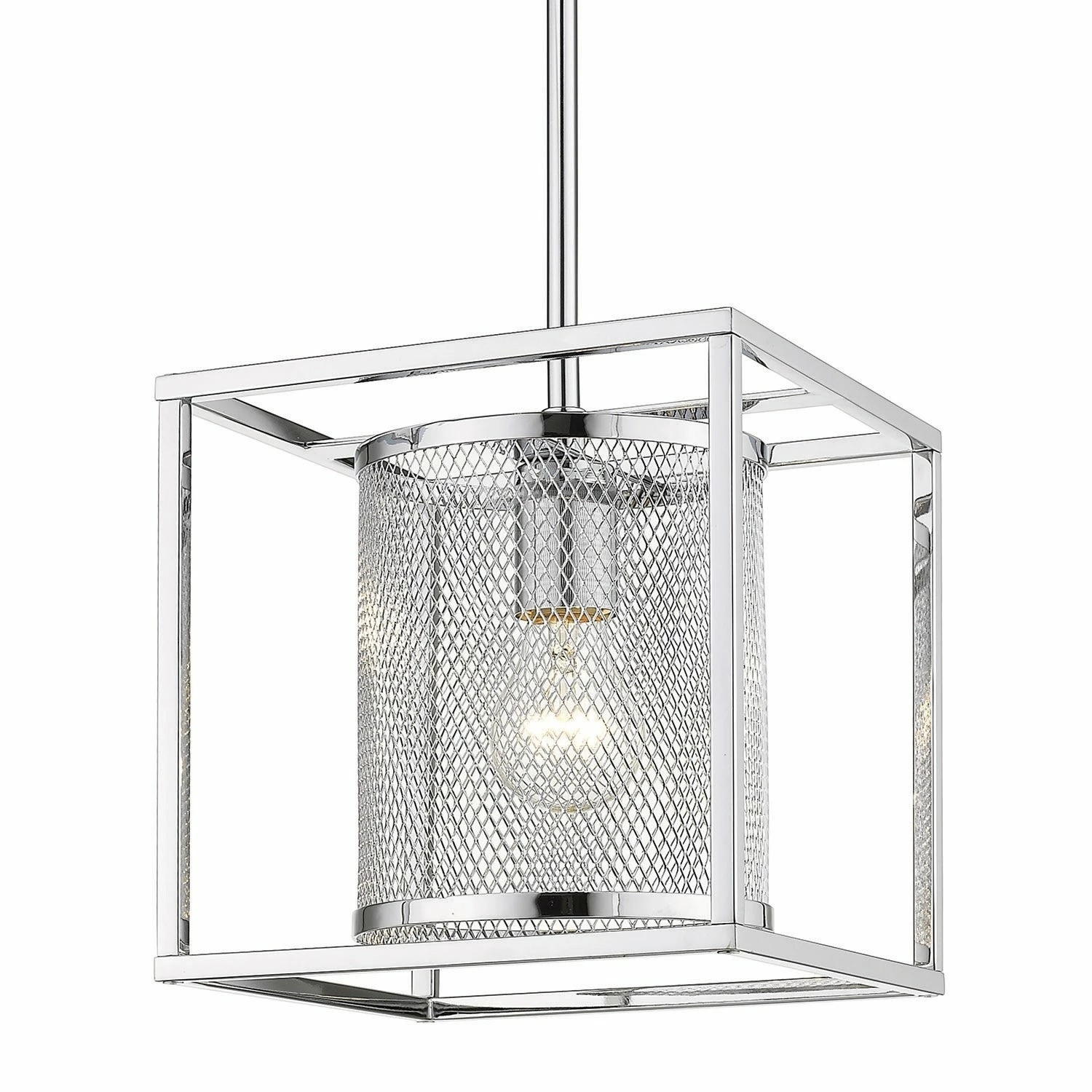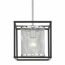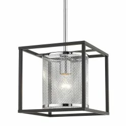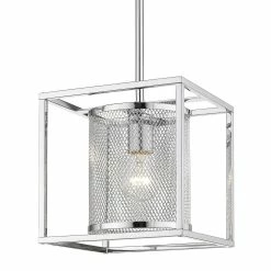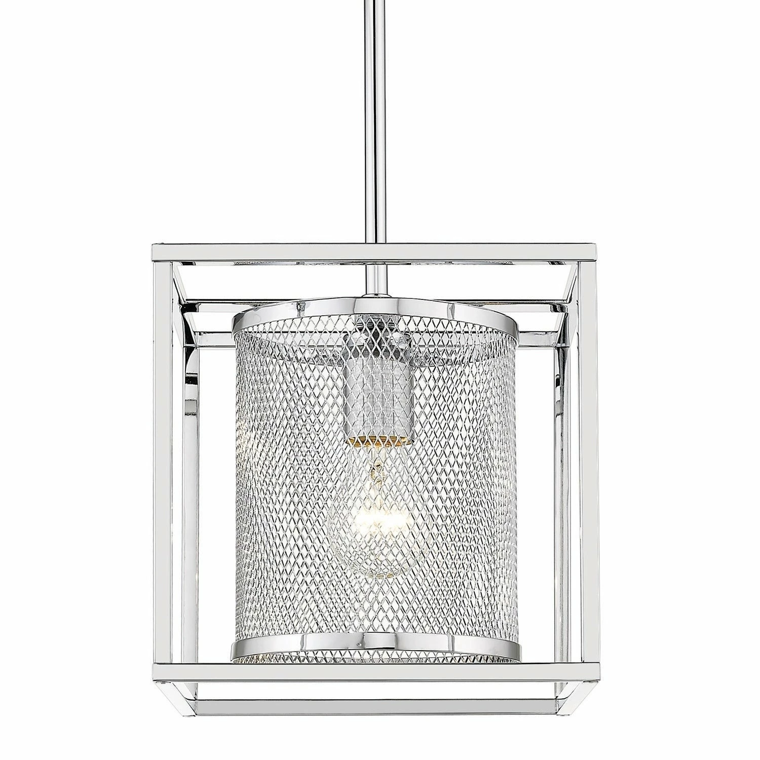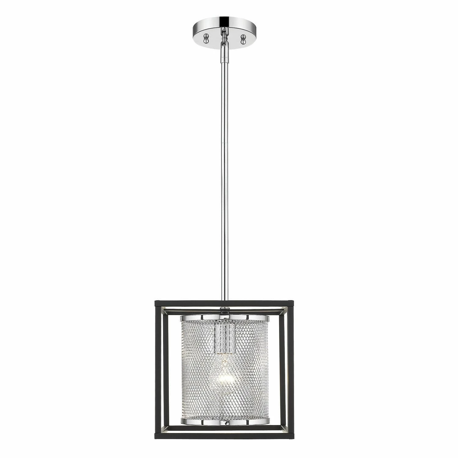 Enhance the look of your room with this stylish design. A simple light source is screened by a mesh metal drum shade finished in gleaming chrome. Framed by an optional contemporary cage, this open, industrial chic look has an airy feel. Choose between a matching chrome cage or add visual interest with the contrasting matte black option. Easily customize the height to suit your application. This mini pendant is perfect grouped over an island or bar.