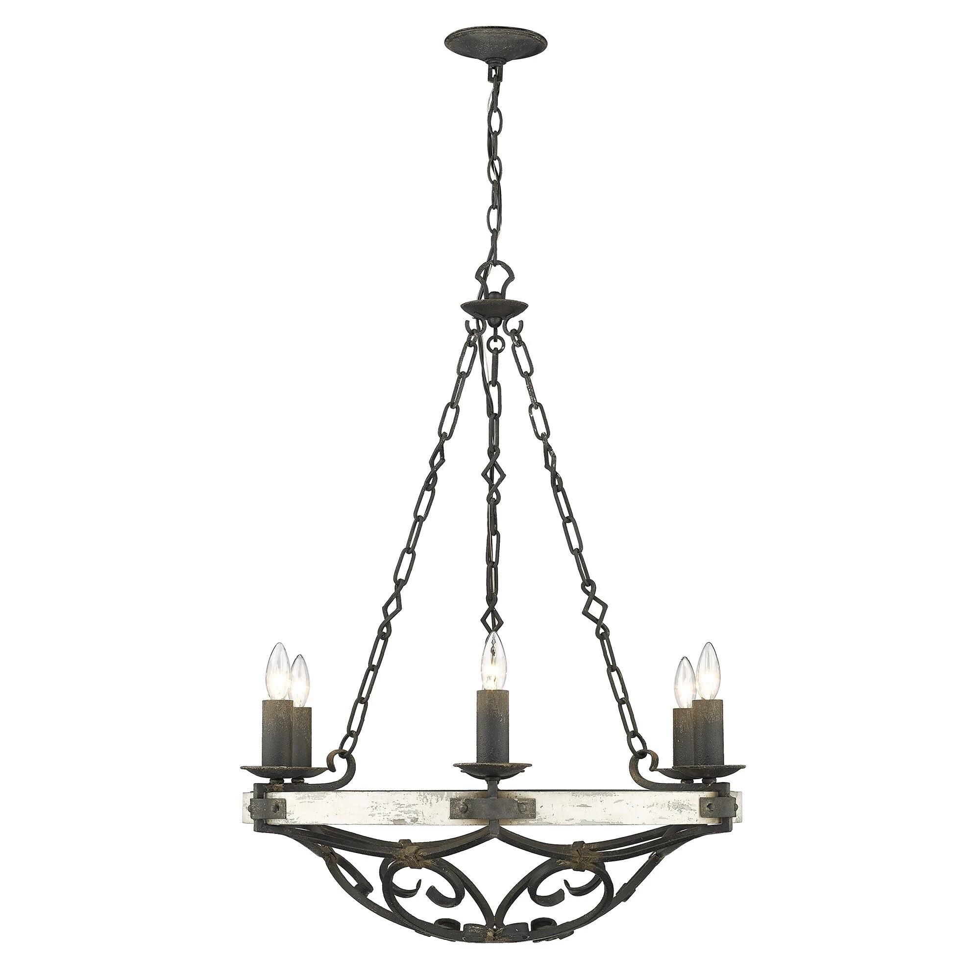 Magnificently traditional, the Madera collection blends antique tones and patinas that speak of a rich Spanish heritage. A sophisticated Antique Black Iron finish on the hand-forged metal scrollwork brings out the details and gives a weathered look. Solid wood accents in a Coastal Driftwood finish bring a casual, rustic feel to the design.