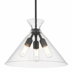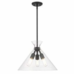 Graceful and modern, Malta is perfect for airy, sophisticated, and contemporary spaces. The source of the series’ true beauty is the clear statement glass. Suspended by tension, gravity alone holds the striking glass in place. The beautiful conical glass flairs elegantly at the top and bottom, shielding the inner lamp cluster. Available in select contemporary finishes, the collection balances feminine and masculine styles. Hang these stylish pendants over a dining room table or group them over a kitchen island.