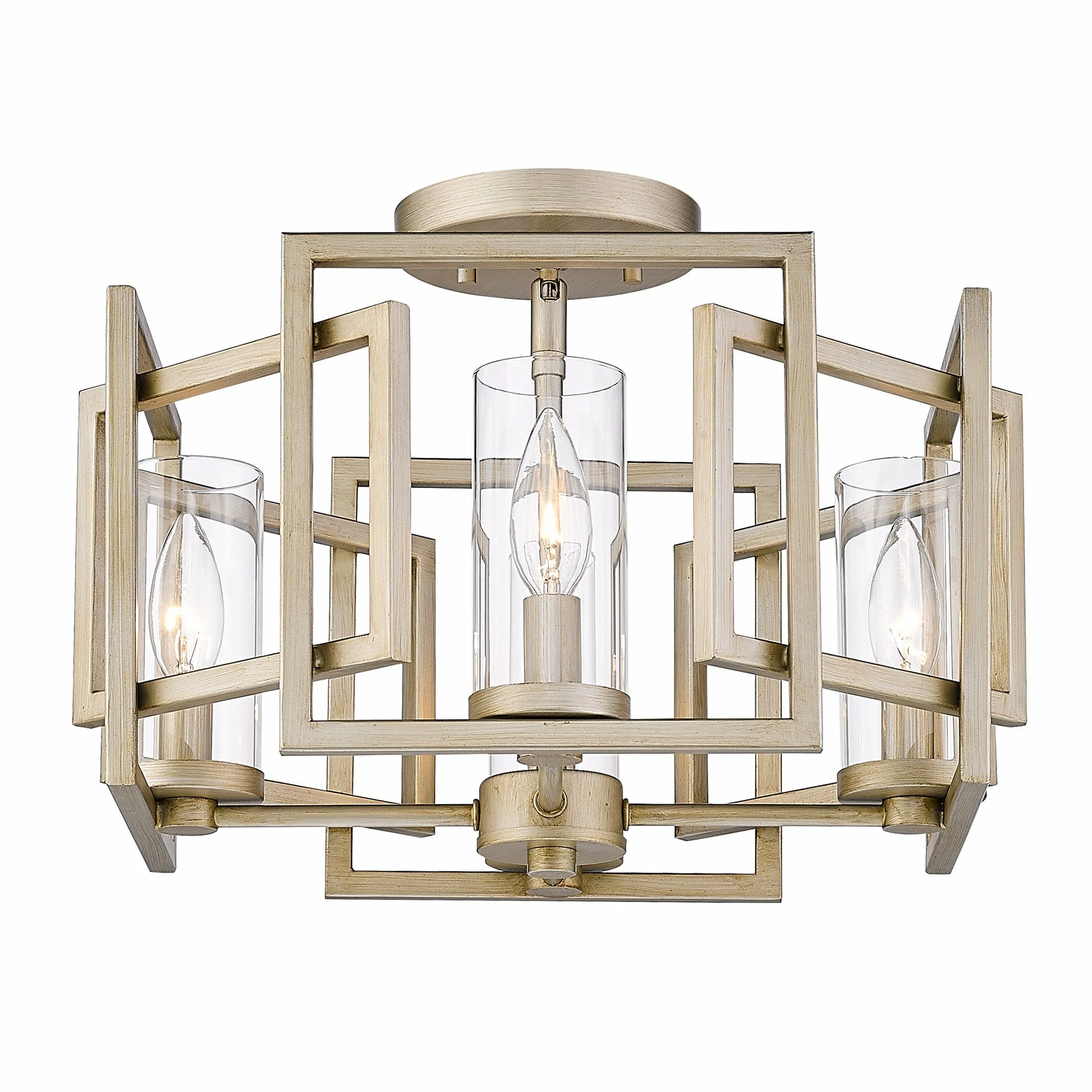 Sleek angles and geometric forms make ultra-modern statements in the Marco collection. The series is offered in multiple finishes that heighten the light airy look of the silhouettes. Clear glass cylinders house stately candelabra bulbs.