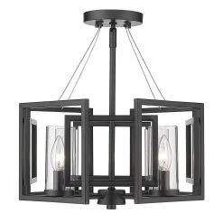 Contemporary geometric construction and a sleek silhouette make an ultra-modern statement, in the form of this modern chandelier. The series is offered in multiple finishes that heighten the light airy look of the silhouettes. Clear glass cylinders house stately candelabra bulbs.