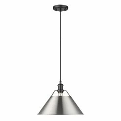 Orwell is an extensive assortment of industrial style fixtures. The beauty and character of the collection are in the refined details. This transitional series works well in a variety of settings. Partial shades shield the eyes from possible hot spots, while the open tops tease onlookers with a view of the sockets and bulbs. The design allows light and heat to escape from above and below the metal shades, providing both task and ambient lighting. Edison bulbs are recommended to compete the vintage, industrial look of the fixtures. A choice-selection of finish and shade color combinations heighten the appeal of the series. Opal glass shades are available for bath fixtures. Single pendants are suspended from woven fabric cords while multi-light fixtures are rod-hung.
