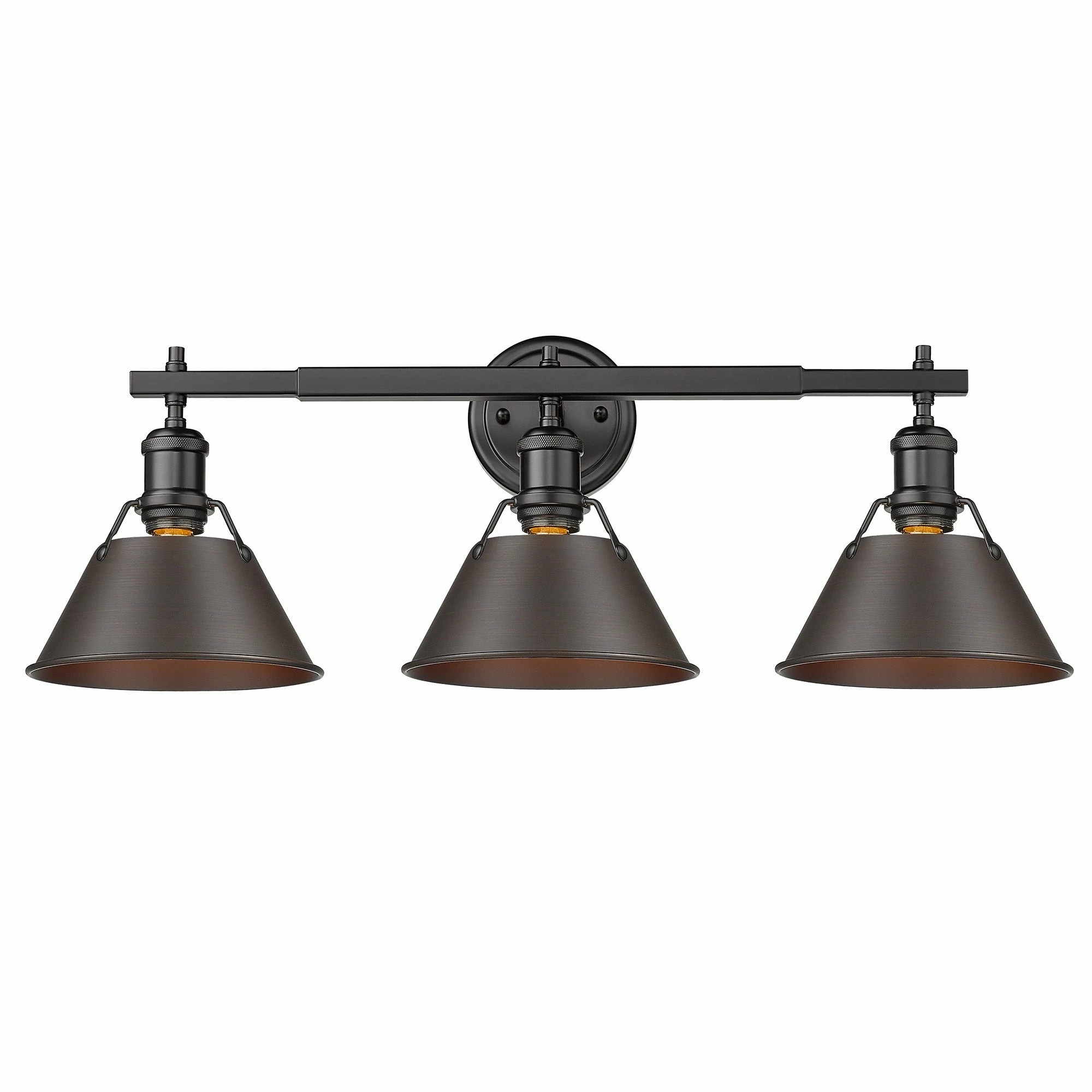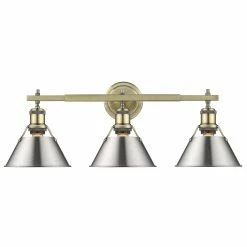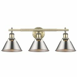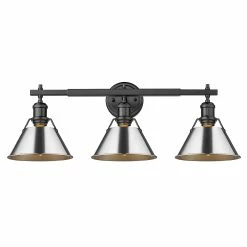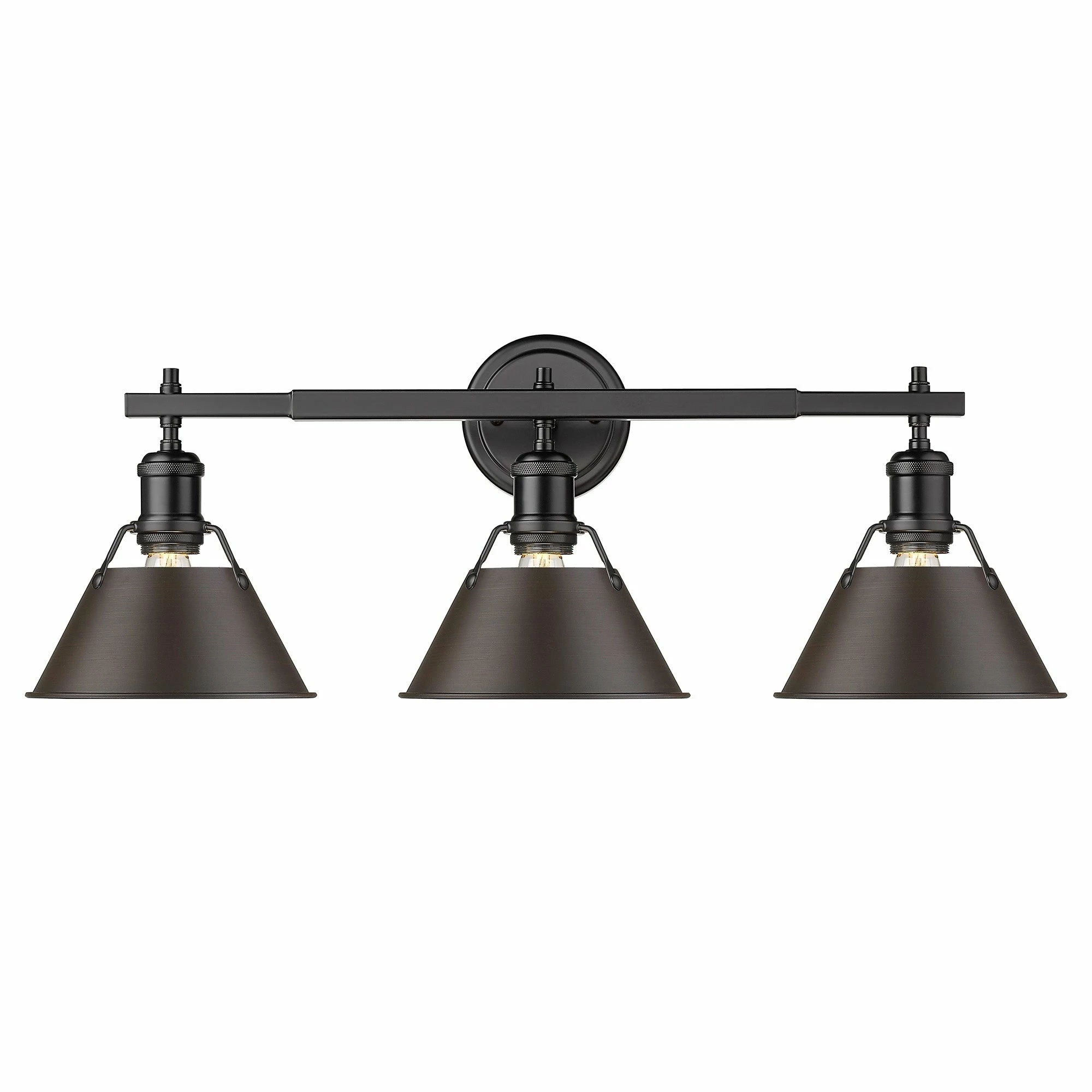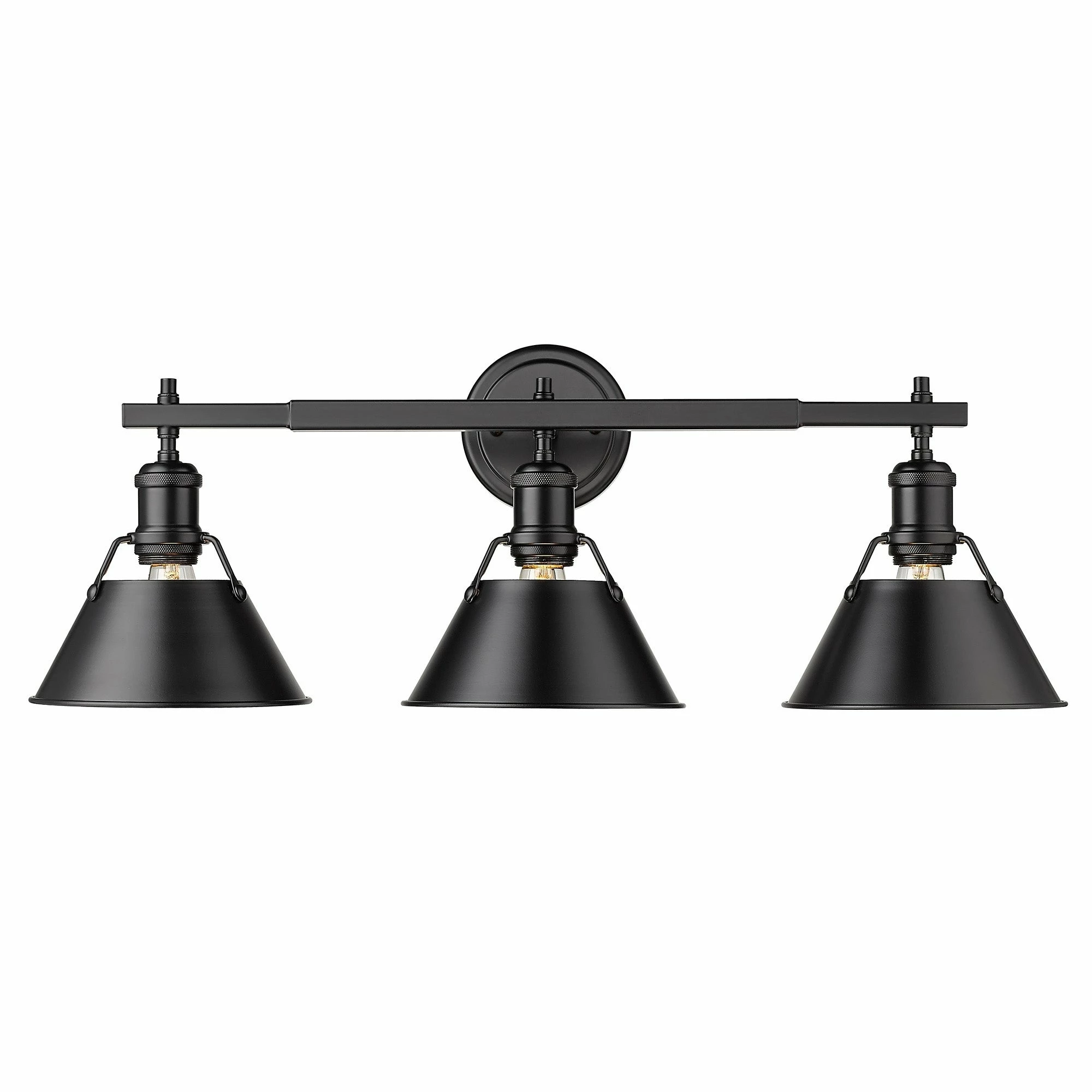 Lend a chic vibe to your bathroom with this stylish light fixture. Crafted from steel and available in a variety of finishes, the fixture features three individual lights, spaced along a horizontal rod. Each light is covered with a conical shade with a gap at the top to give a view of the lightbulb, completing the vintage, industrial vibe of this attractive vanity light.