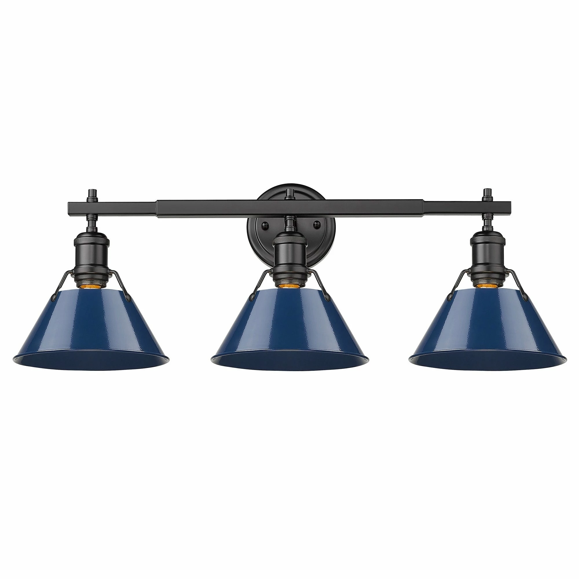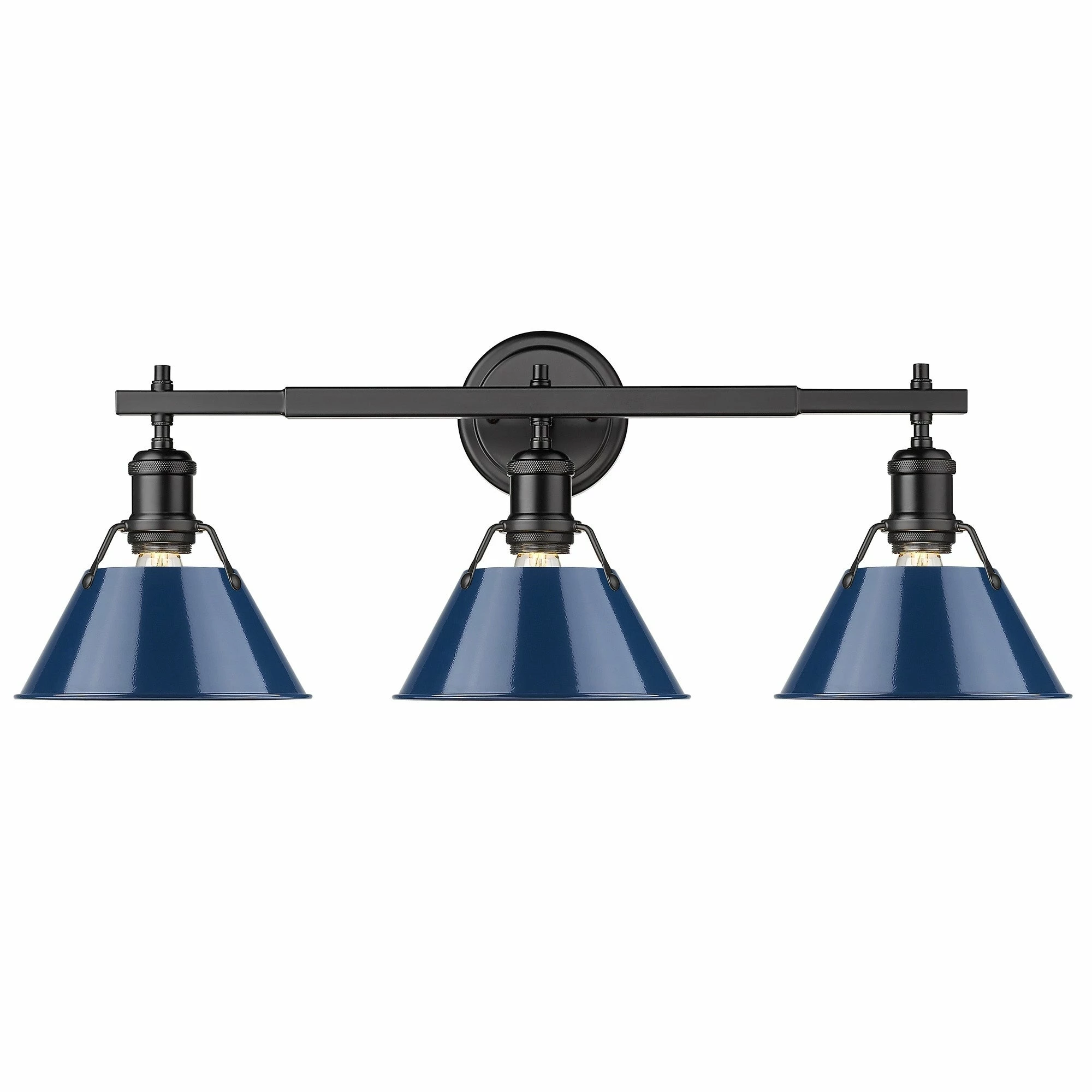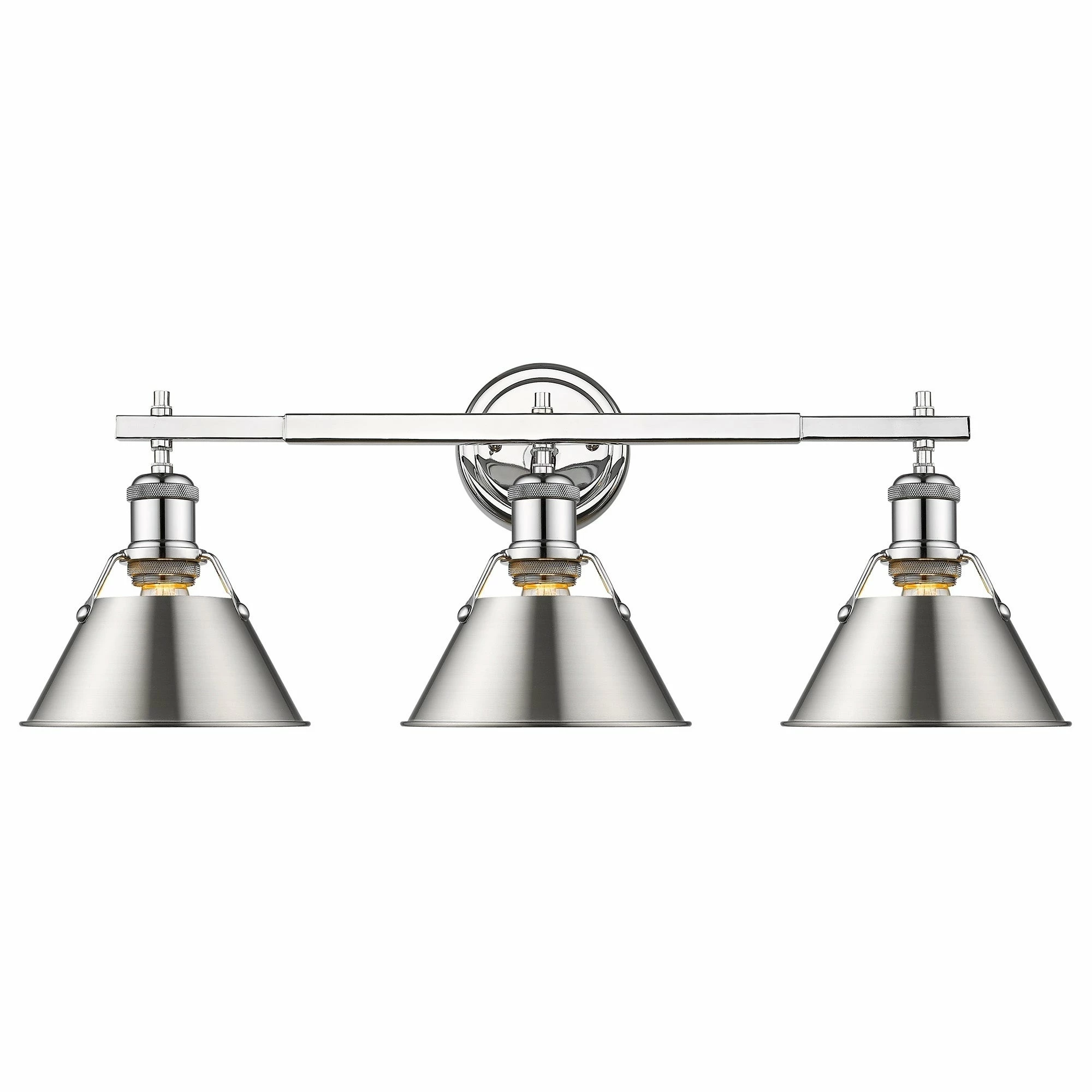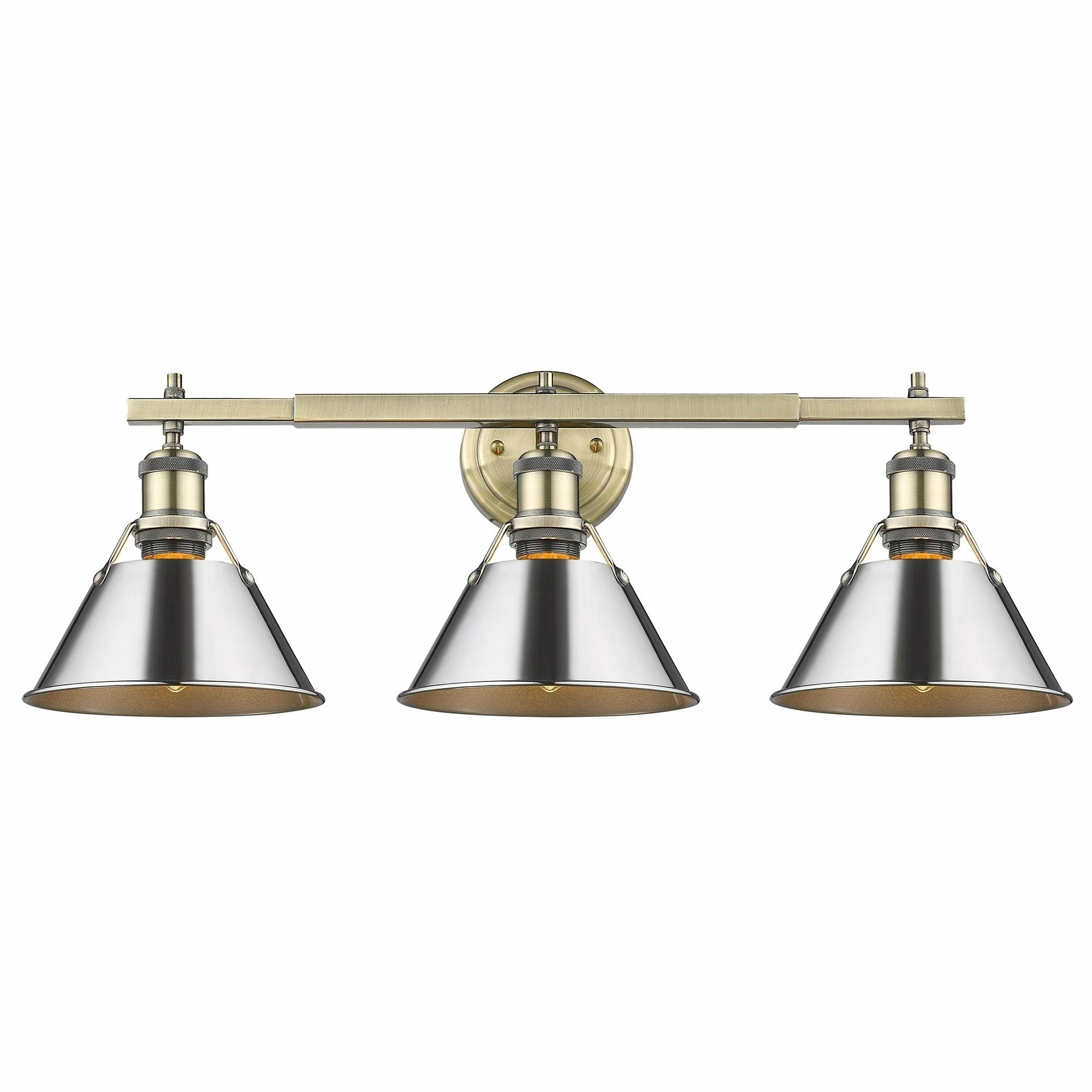 Lend a chic vibe to your bathroom with this stylish light fixture. Crafted from steel and available in a variety of finishes, the fixture features three individual lights, spaced along a horizontal rod. Each light is covered with a conical shade with a gap at the top to give a view of the lightbulb, completing the vintage, industrial vibe of this attractive vanity light.