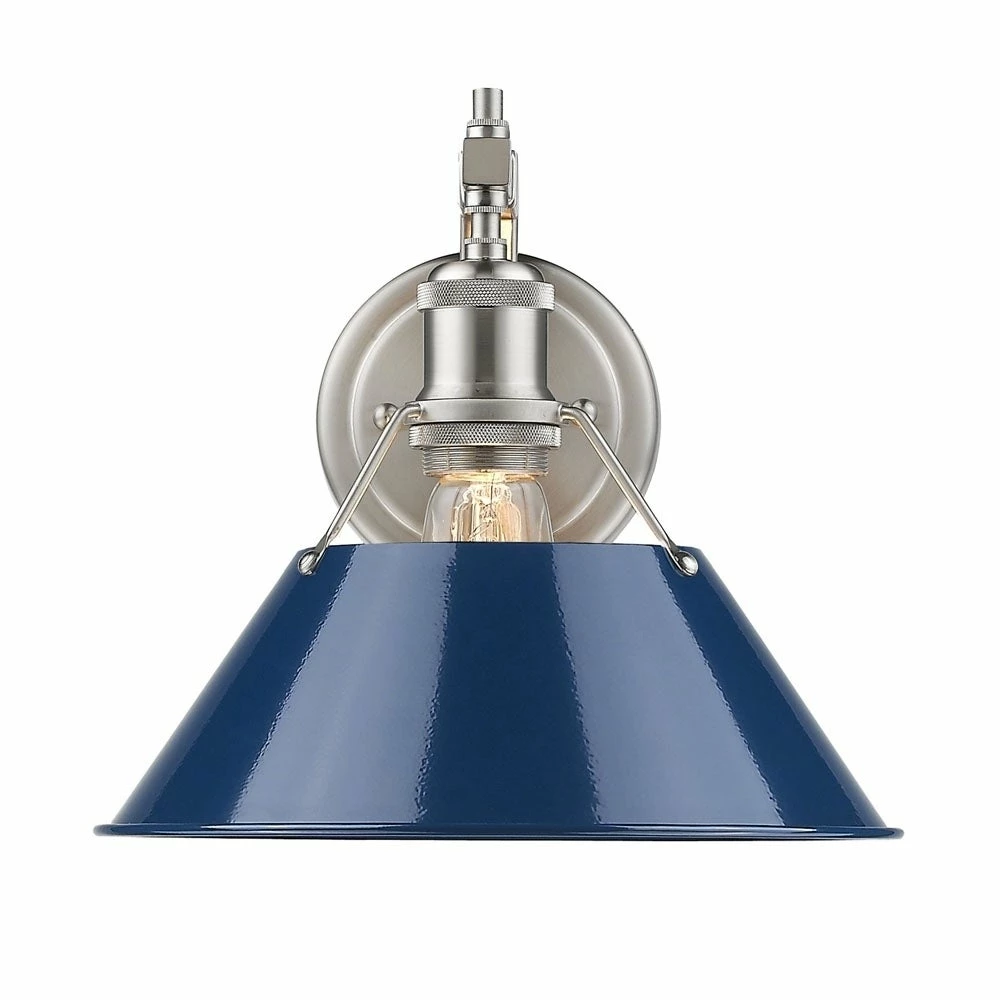 Light up your home in transitional style with this Orwell wall sconce in pewter with a navy blue shade. This UL-listed single-light wall sconce is constructed of steel for strength and durability.