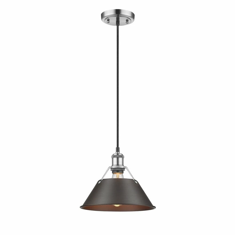 Spotlight a kitchen bar or island with this industrial-inspired pendant light. Made from steel for durability, this pendant light features a pewter finish accented by a rubbed bronze shade for visual contrast.