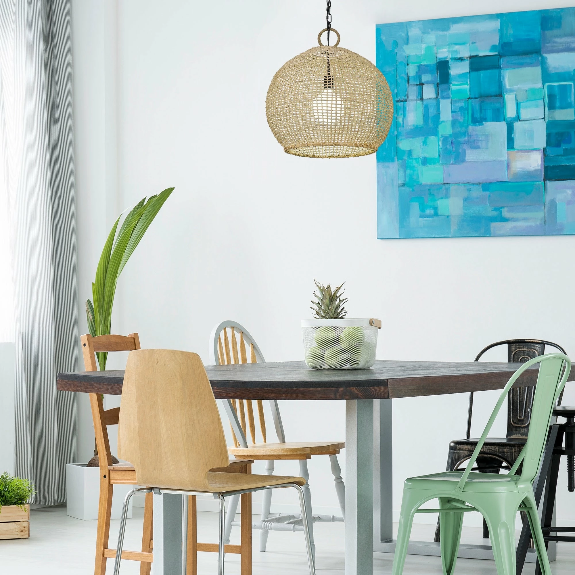 Complement minimalist style and natural decors with Reed. This simple, natural fiber collection is made of handwoven split bamboo wrapped around a circular, matte black frame. Reed is the perfect mix of rustic and modern. This chain-hung collection can work with a variety of decors, including eclectic, coastal, or farmhouse. This large pendant looks fabulous in foyers, kitchens, dining rooms, and bedrooms.