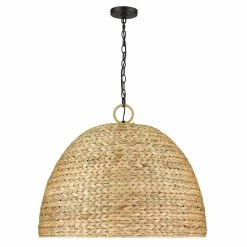 Wild by nature, Rue draws inspiration from ancestral basket-making traditions. Woven Sweet Grass is braided in a herringbone pattern and then tightly woven into dome shades. The shape of the large shades directs light downward for excellent downlight. Modern style meets tradition within this collection’s contemporary matte black finish and hand-woven shade. The look is perfect for coastal and natural interiors.