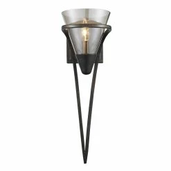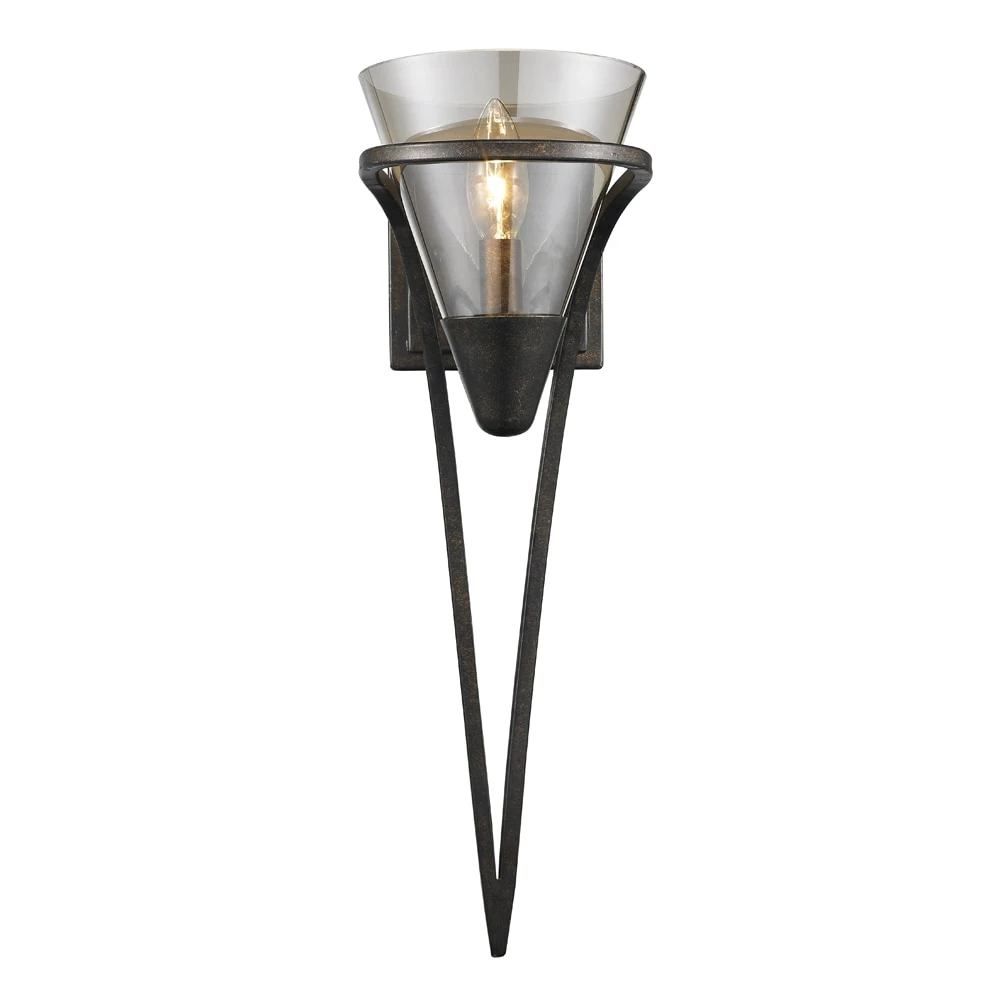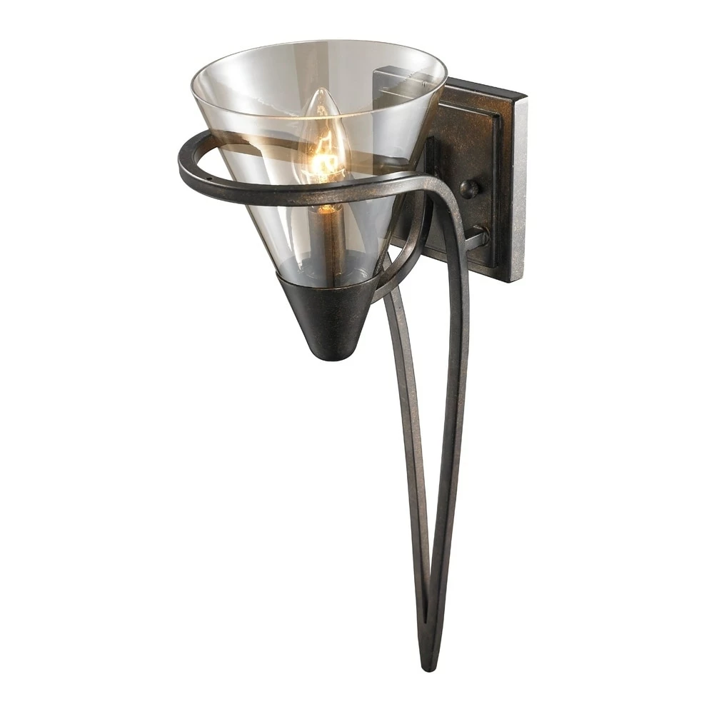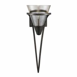 Welcome guests into your powder room with the soft light from this one-light wall sconce. LED compatible for energy-efficient savings, this sconce’s torch-like, amber glass form and burnt-amber finish lend the room a homey, old-fashioned touch. Solid steel construction ensures long-lasting, reliable performance, and the sconce is UL-listed for safety.