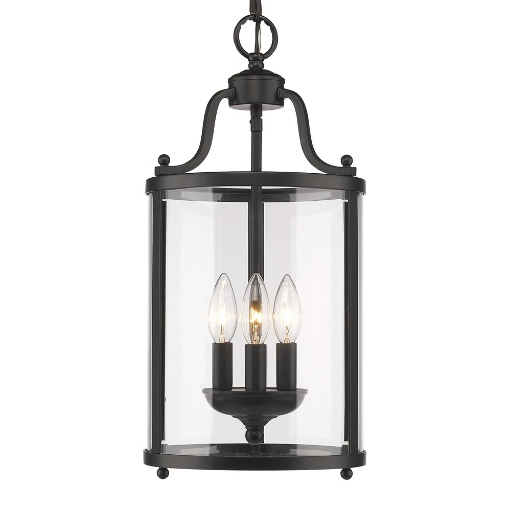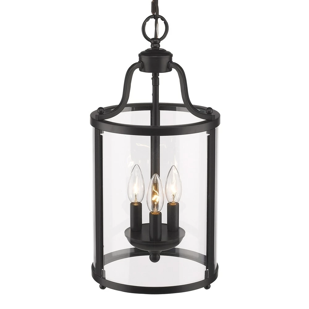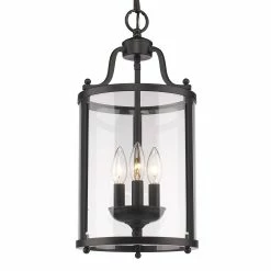 Illuminate your home with this Golden Lighting three-light pendant. The three lights shine brightly through clear glass, surrounded by a metal frame with a smooth finish for elegant appeal.