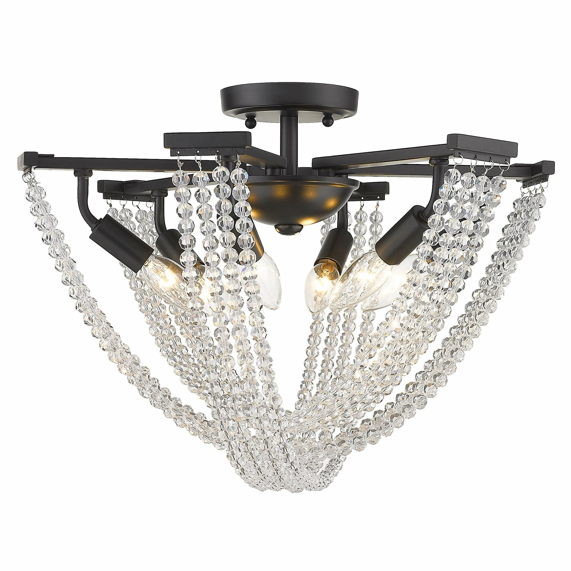 Elevate your space with the unique design of our Samba collection. Inspired by the energetic yet whimsical feel of tropical nights, this collection utilizes natural materials. Gleaming crystal, rustic wood beads, or glamorous gold chain shade options can create a number of styles. Strands of select material hang and drape across the fixture in a crisscross fashion creating a visual interest.