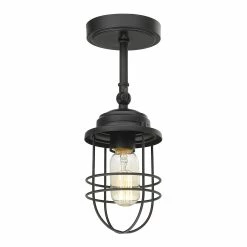 Nautical-inspired, Seaport is a collection of industrial fixtures to create your seaside retreat. Offered in pewter and matte black, the New England style is enhanced by protective cages that shield the otherwise exposed bulbs. Created to suit the needs of many, ball joints permit a multitude of configurations. Point all of the metal shade down for directional task lighting or angle it out to fit a tight space. Sconces are popularly used in halls, stairways, and foyers as accents. This sconce is approved for damp locations.