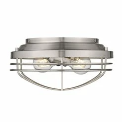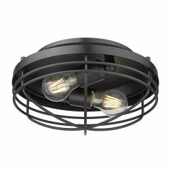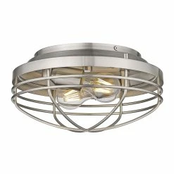 Nautical-inspired, Seaport is a collection of industrial fixtures to create your seaside retreat. Offered in pewter and matte black, the New England style is enhanced by protective cages that shield the otherwise exposed bulbs. Created to suit the needs of many, swivel canopies allow the fixtures to be mounted on sloped ceilings. Ball joints permit a multitude of configurations. Point the metal shade down for directional task lighting or angle it out to fit a low ceiling or tight space. This flush mount is UL approved for use in a bathroom, but also works perfectly in a kitchen, living room, entry, or hallway.