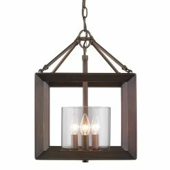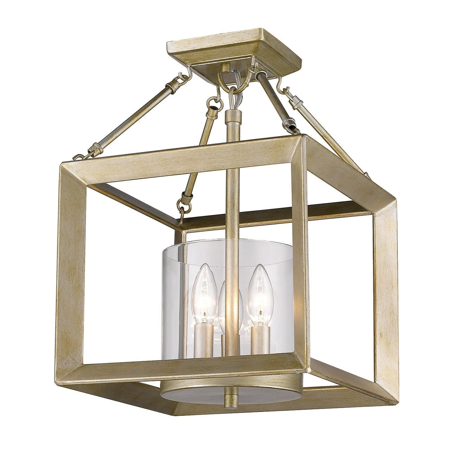 Modern lanterns featuring a handsome beveled cage design make a modern, elegant statement in the Smyth collection. Clean geometry creates contemporary style with steel candles and candelabra bulbs encased in two glass options. The fixtures are offered in 3 finishes: Chrome, Gunmetal Bronze and White Gold. The gleaming Chrome finish adds a sleek, contemporary option to this open-caged collection. A darker option, the Gunmetal Bronze finish has warm bronze undertones and is perfect for all industrial or vintage aesthetics. The White Gold finish option softens the geometric form, creating a more delicate and transitional appearance. Glass fixtures are available with Clear Glass or Opal Glass shades. This 3 light mini chandelier creates a stylish focal point that can be mounted as a flush mount or hung as a pendant.