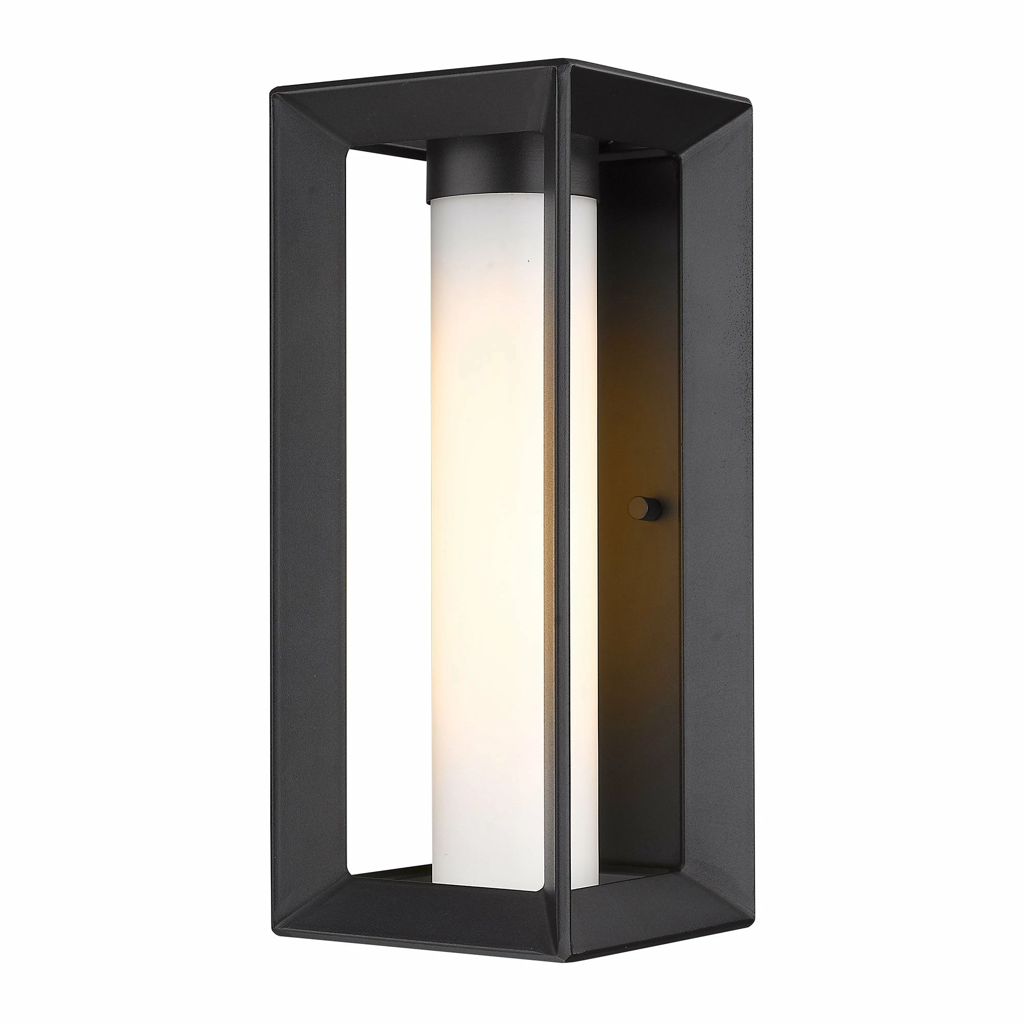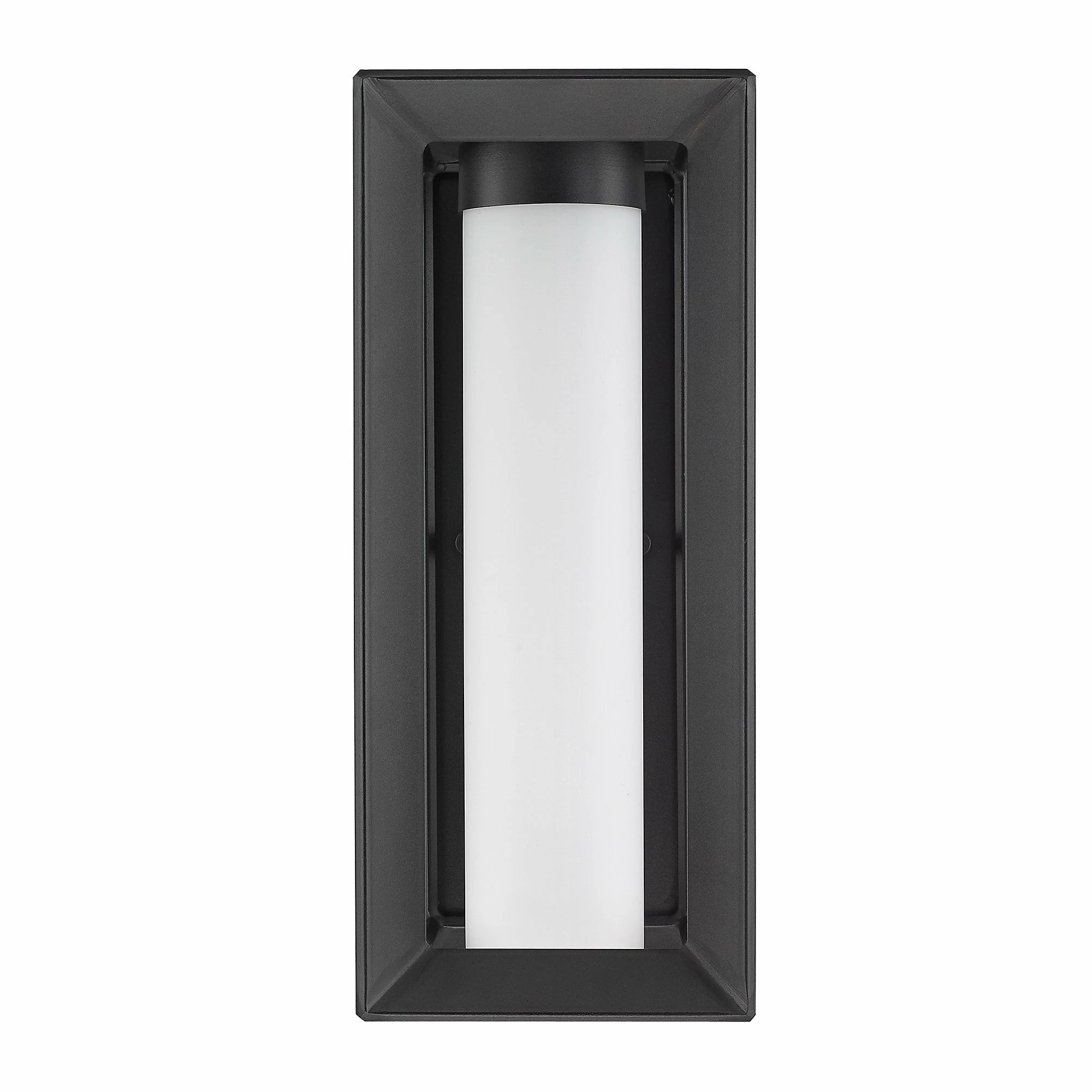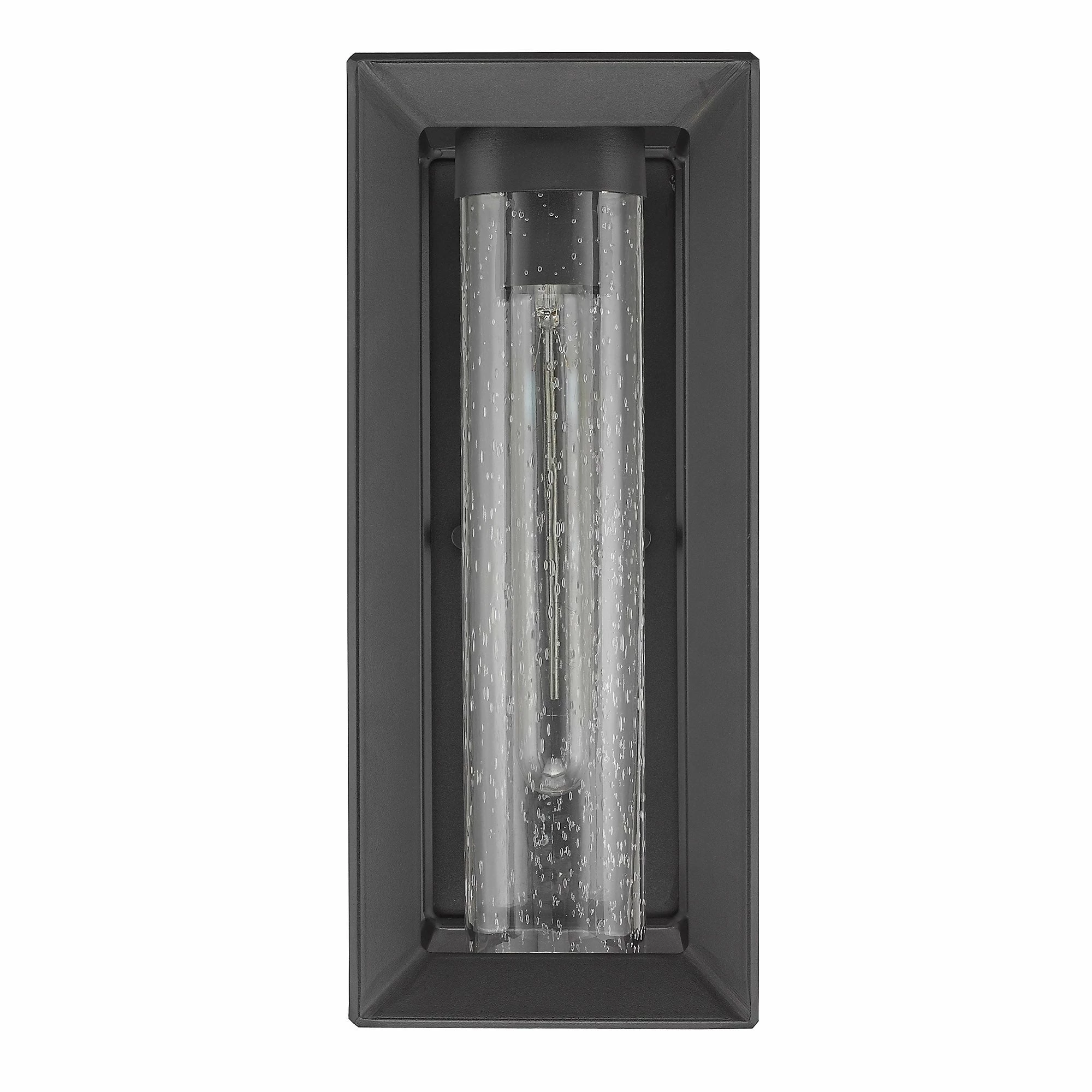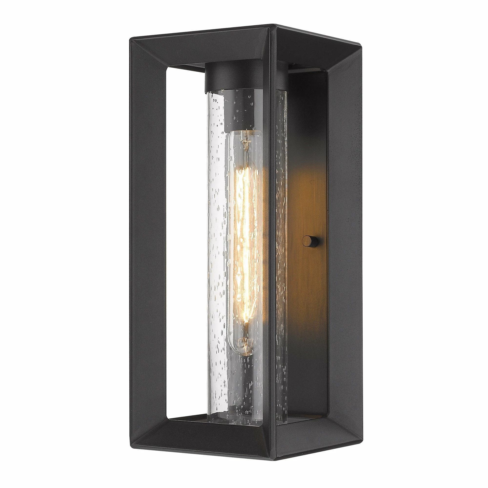 Modern lanterns featuring a handsome beveled cage design make an elegant statement in the Smyth Outdoor collection. Clean geometry creates a contemporary style. These wet-rated, open-cage fixtures are offered in a textured Natural Black finish with two glass options: Seeded or Opal. This outdoor series is wet rated and is UV-coated to protect it from fading.