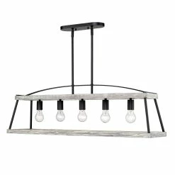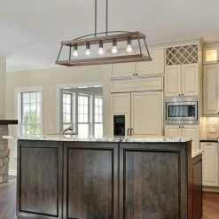 With authentic wood accents and tapered square silhouettes, Teagan is the epitome of contemporary rustic charm. Offered with two genuine wood finish options; a light Gray Harbor Wood and a red Rustic Oak finish, this collection is perfect for traditional to modern decors. The Teagan Collection enhances the casual elegance of country cottage and modern farmhouse styles. This linear pendant provides soft task lighting, fully illuminating a kitchen bar or countertop.
