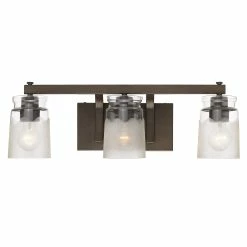 Nostalgic for a bygone era, the Travers Collection has a simple form that creates dramatic style. The rustic, industrial-inspired design features simple lamps enclosed in multiple artisan glass options that pair well with the offered finishes. Extra-large glass shades house medium base bulbs offering an ample supply of light. Available in a selection of finishes, these transitional fixtures work well with a variety of decors. This vanity is perfect over a bathroom mirror.