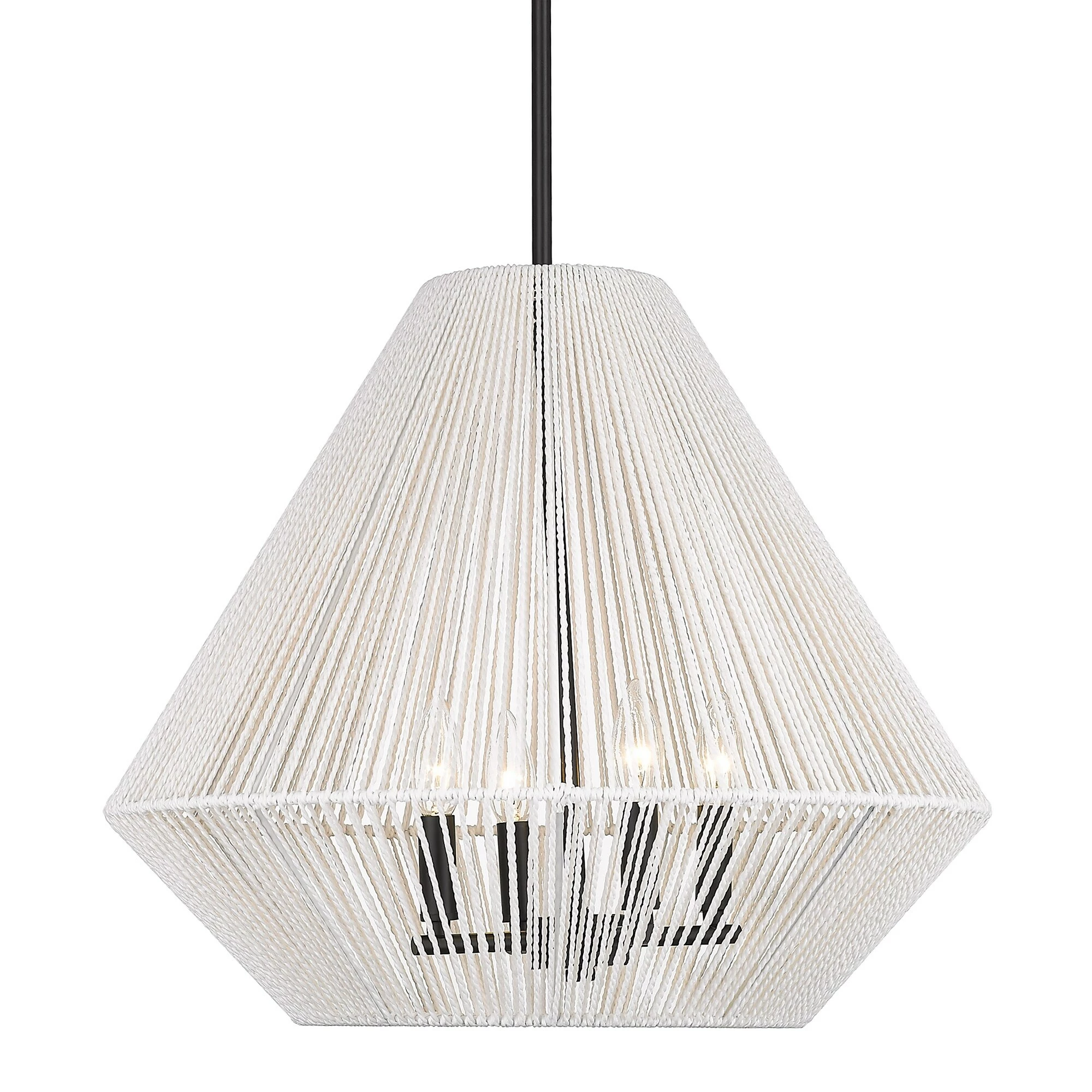 Be inspired by the natural texture and shape of Valentina. This series is the perfect addition to any home with minimalist or natural fiber decor. A sophisticated, matte black finish complements the handwoven bleached Raphia Rope shade. This 4-light pendant works fabulously in foyers, kitchens, dining rooms, and bedrooms.