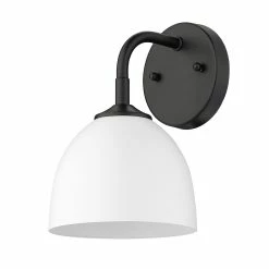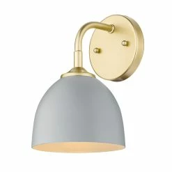 The Zoey Collection is proof that simple can be beautiful. This elegantly utilitarian series has the chic versatility to enhance the style of a variety of spaces. The smooth lines of this minimalist design pair well with transitional to modern dรฉcors. The cleanness of the contemporary look gives the fixtures a slightly industrial feel. Zoey is offered in a number of sizes with a combination of shade and finish options available. The color of the shade’s interior consistently matches the shade’s exterior finish. The silhouette of the metal shade is a modern update to the classic dome shape. This wall sconce is perfect for hallways, bedrooms, or to use as an accent.