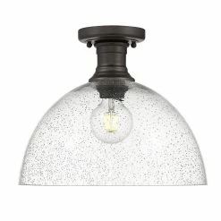 Best Pirce 🌟 Golden Lighting Hines Semi-Flush – 14″ Rubbed Bronze With Seeded Glass 🌟